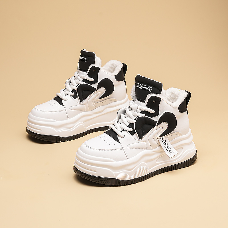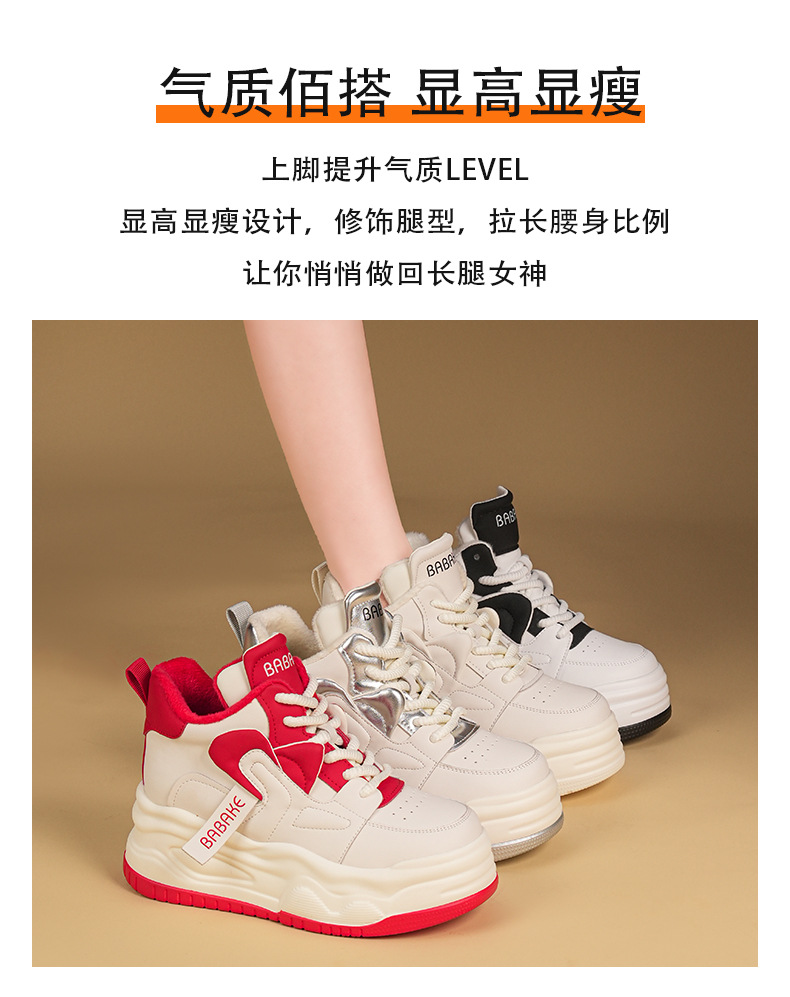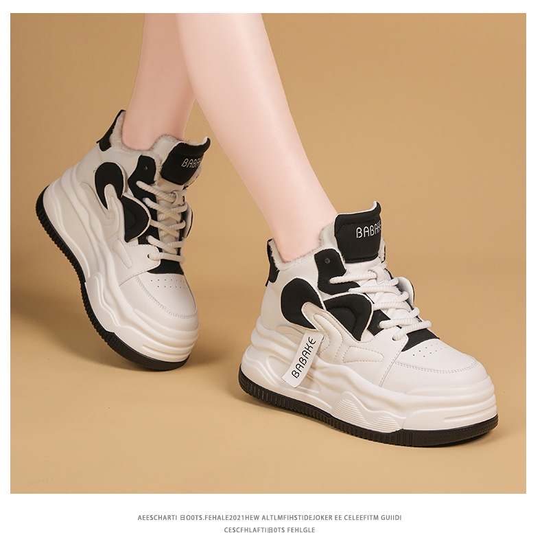 여성의 두꺼운 밑창 흰색 신발 2024 봄과 가을 새로운 올 매치 스포츠 캐주얼 신발 기모 여성용 숨겨진 높이 가죽 보드 신발스토어 가기