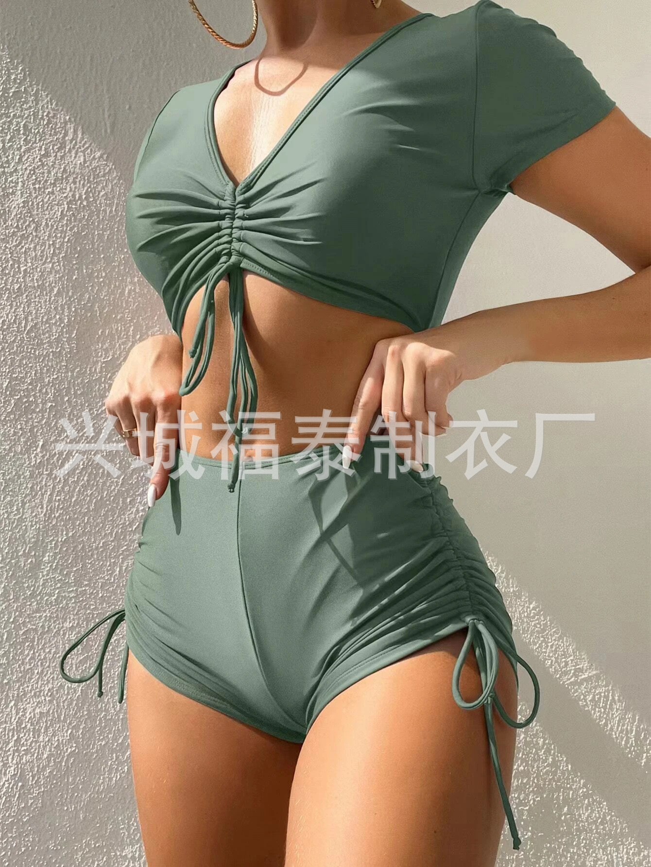 2024 국경 패션 반팔 여성 유럽과 미국 수영복 하이 엔드 섹시한 여성 투피스 수영복 세트 아마존