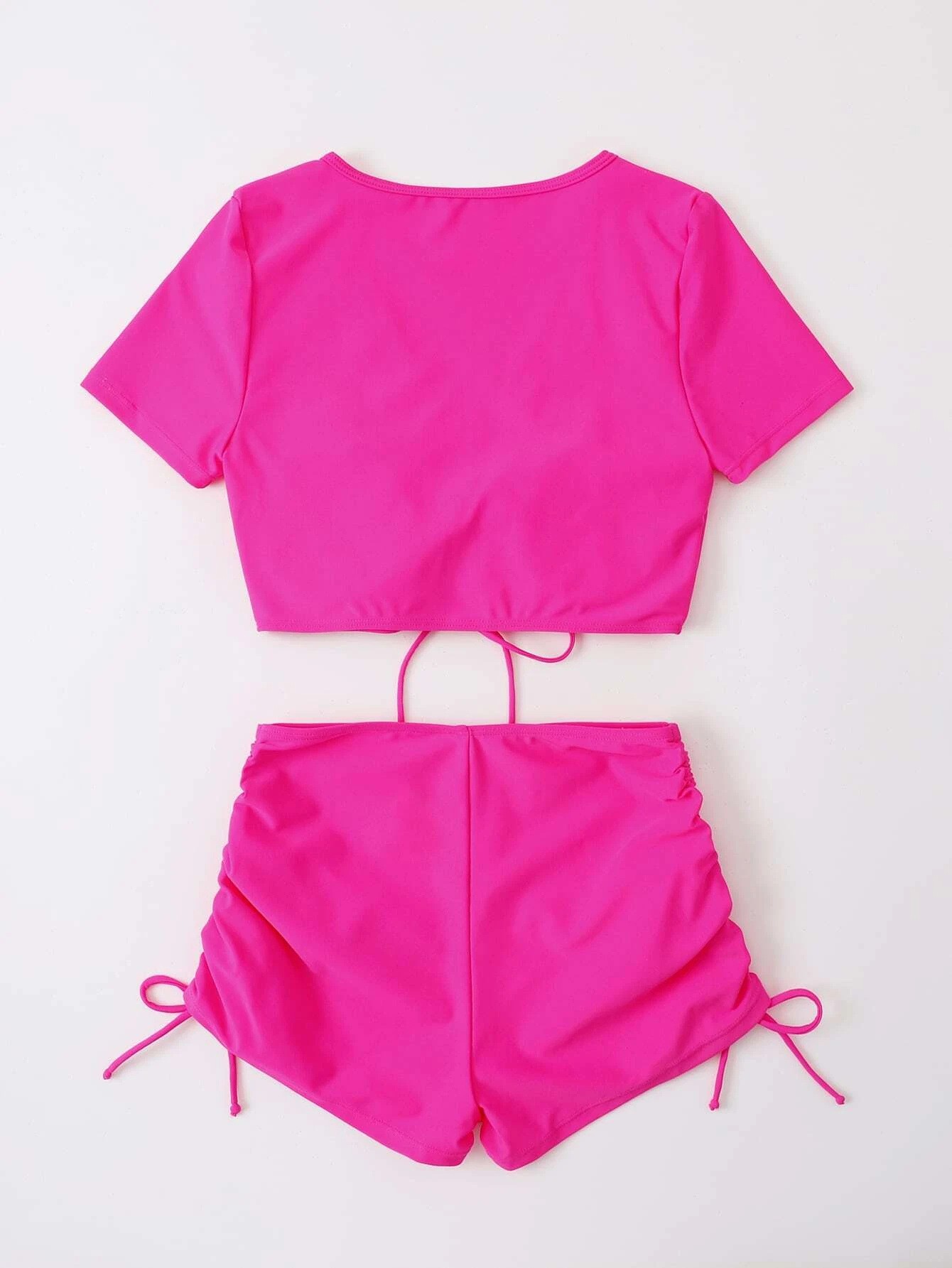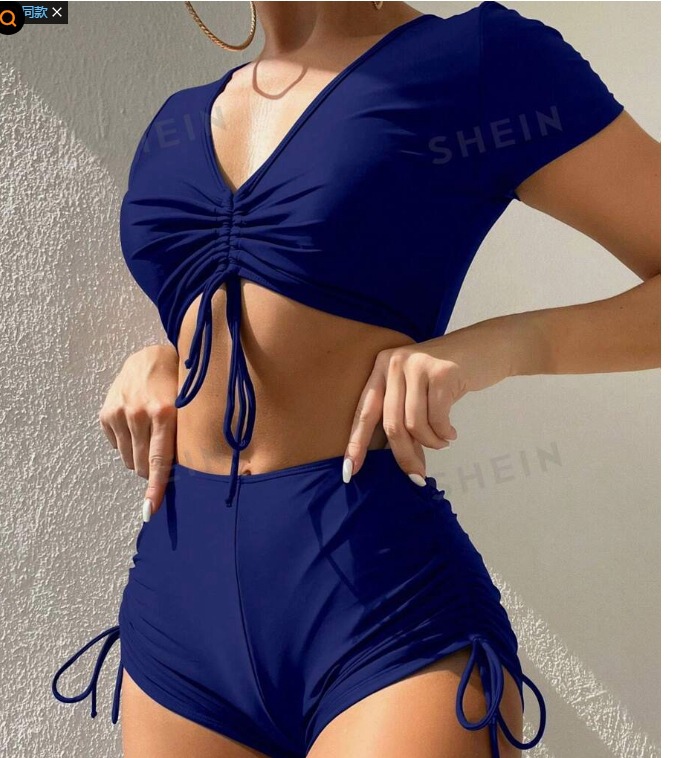 2024 국경 패션 반팔 여성 유럽과 미국 수영복 하이 엔드 섹시한 여성 투피스 수영복 세트 아마존스토어 가기