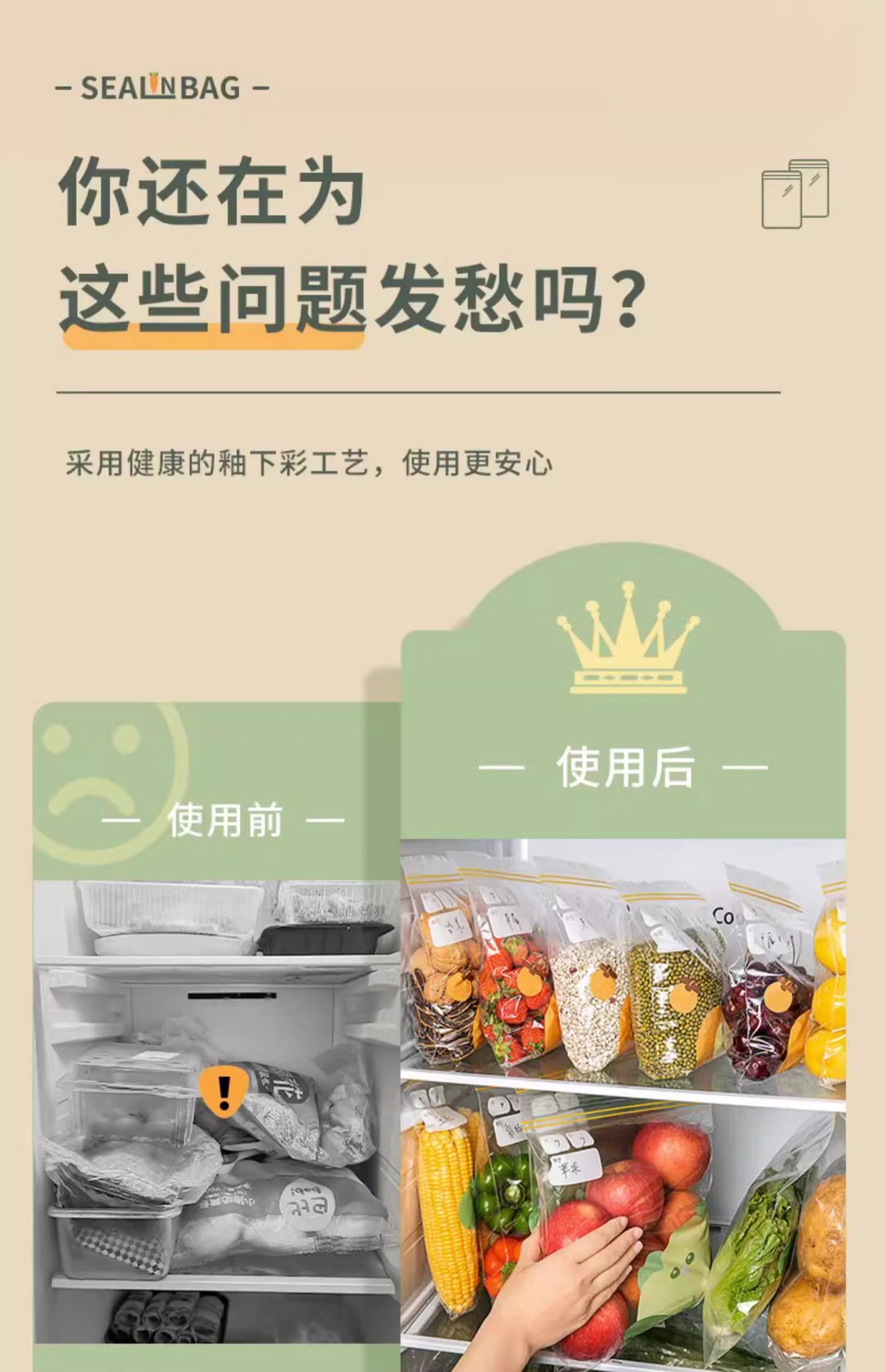 밀봉백 식품등급 신선도 유지백 가정용 냉장고 자체 밀봉 두꺼운 비닐 냉장 보관 전용 포장 밀봉스토어 가기