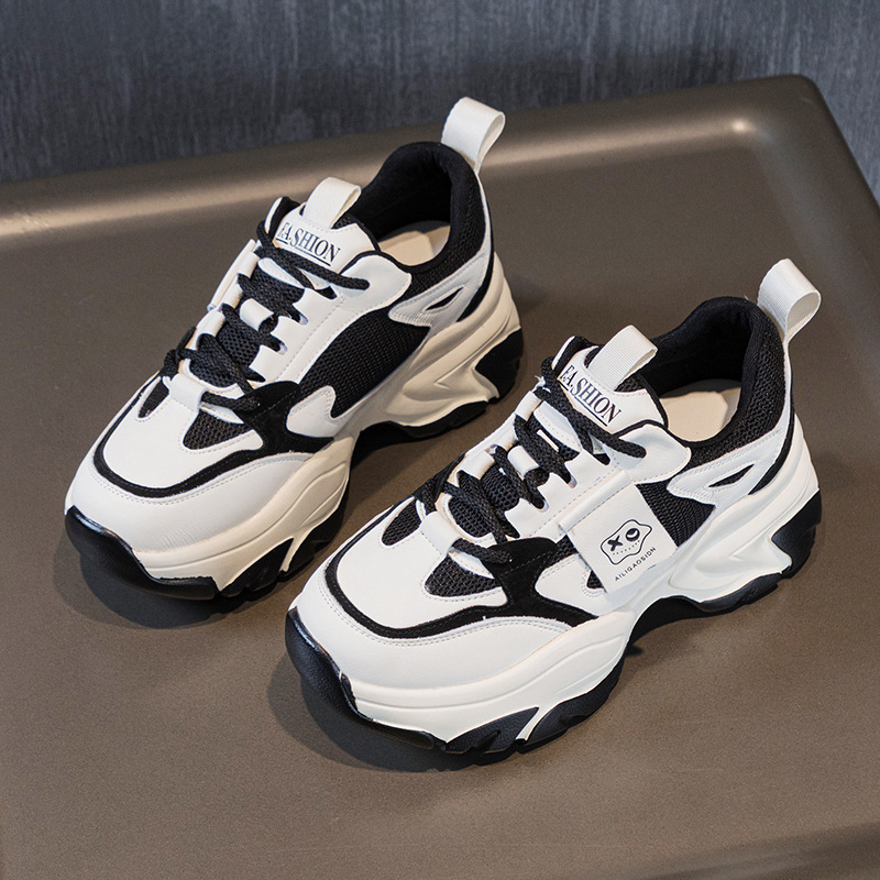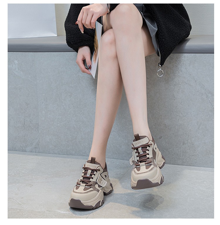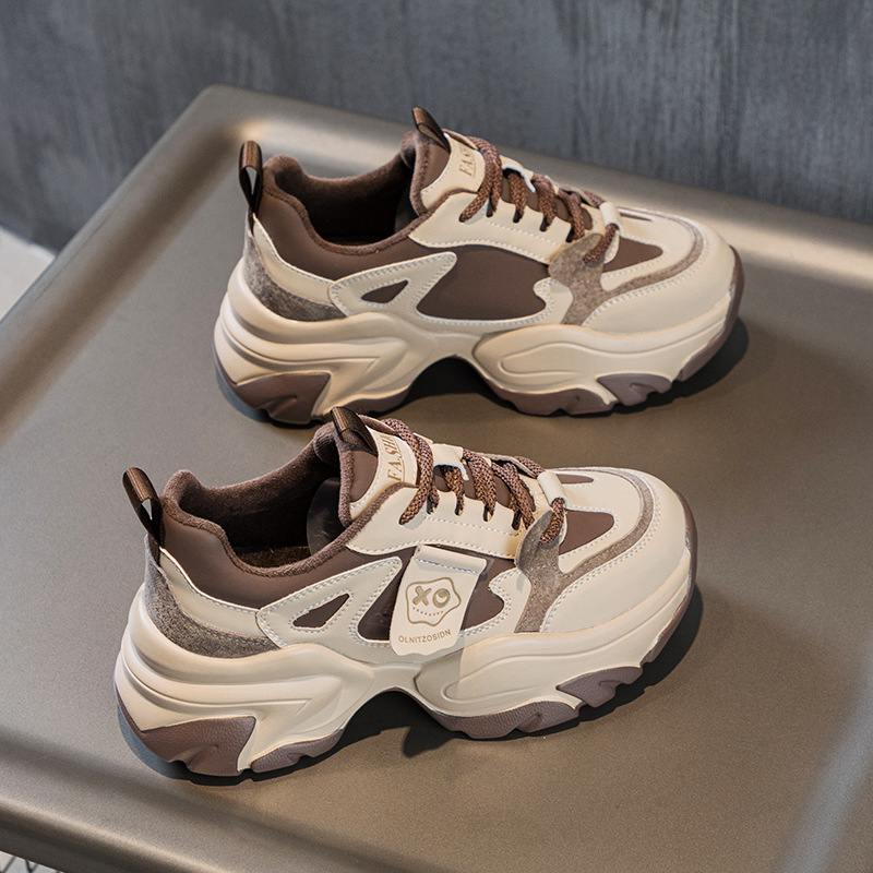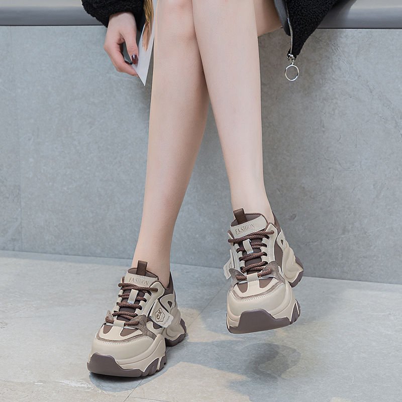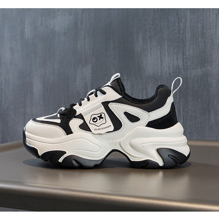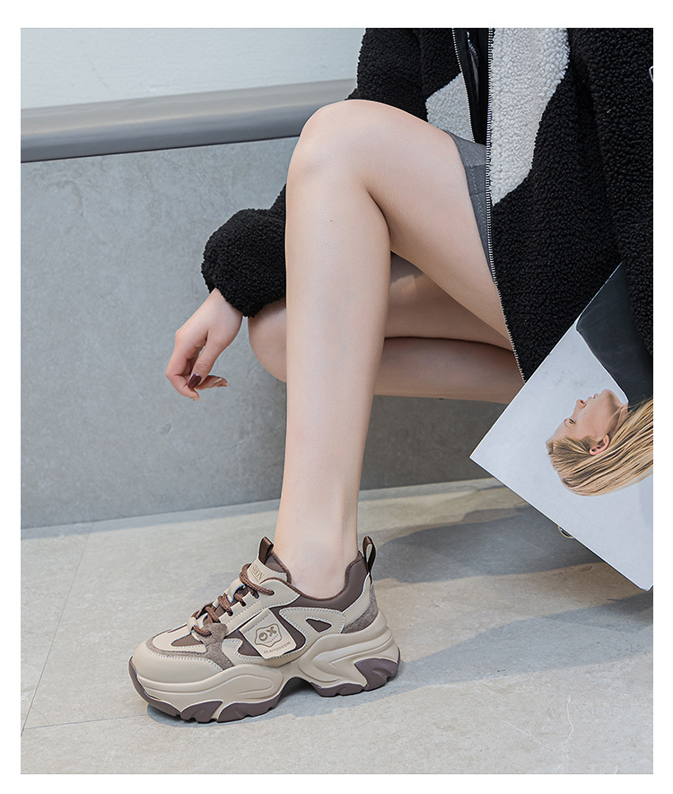 여성을위한 인기있는 두꺼운 밑창 투박한 신발 2024 봄 새로운 캐주얼 운동화 올 매치 정품 가죽 여성 신발 높이 증가 운동화스토어 가기