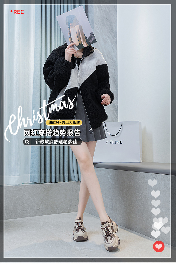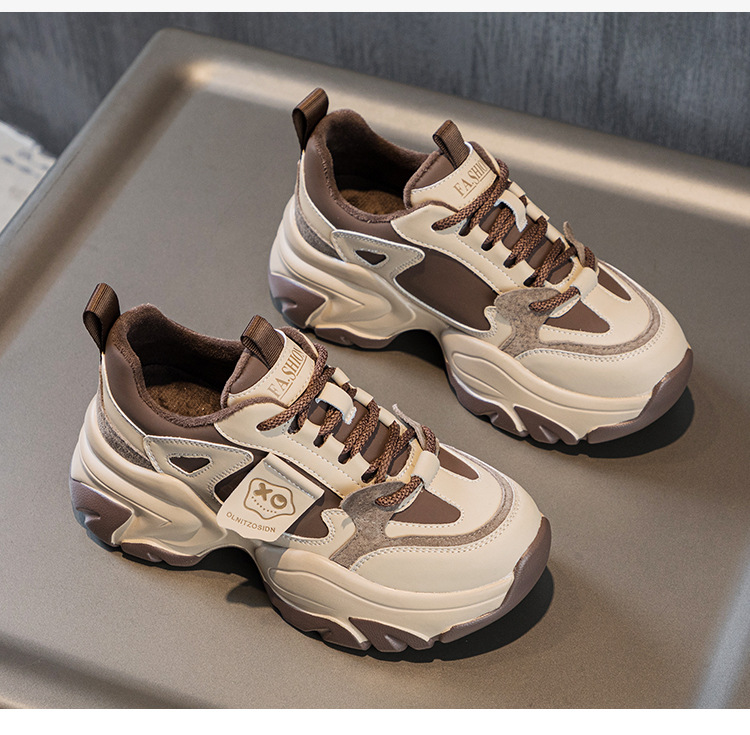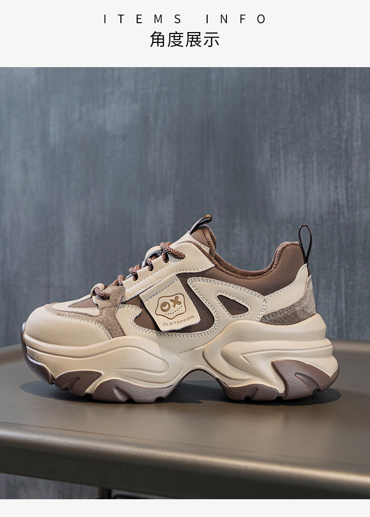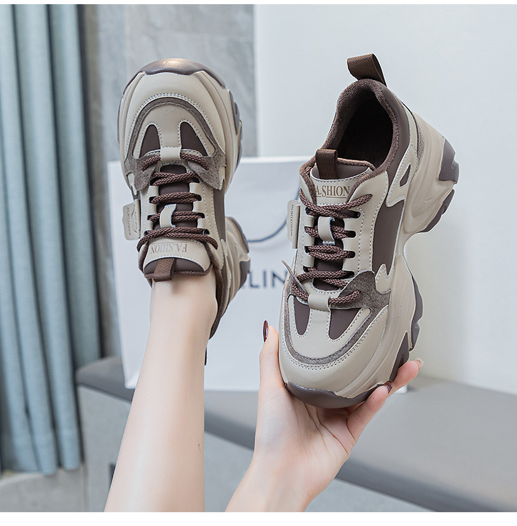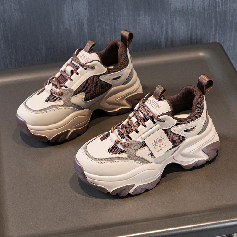 여성을위한 인기있는 두꺼운 밑창 투박한 신발 2024 봄 새로운 캐주얼 운동화 올 매치 정품 가죽 여성 신발 높이 증가 운동화스토어 가기