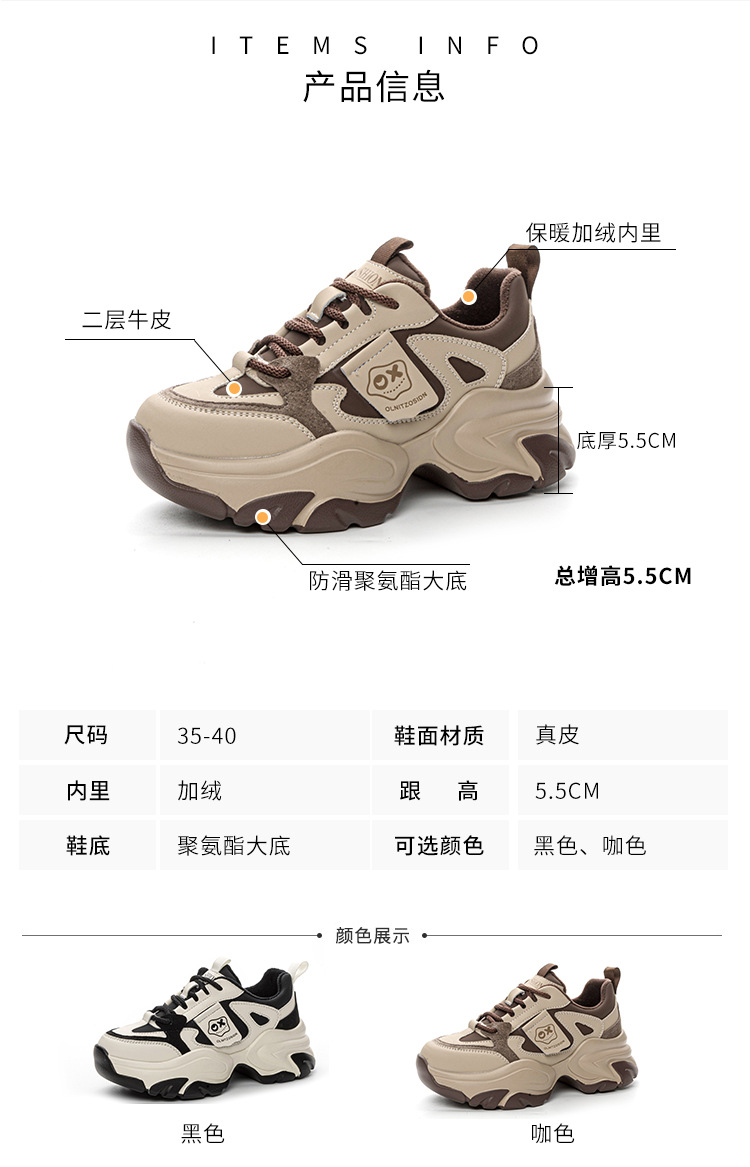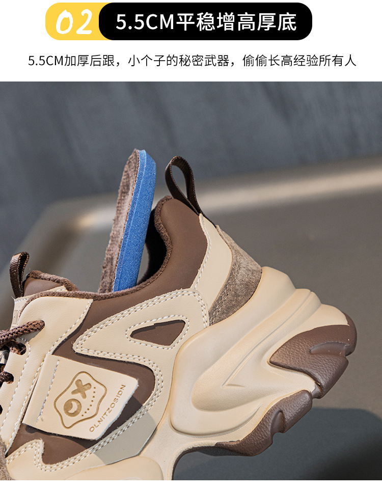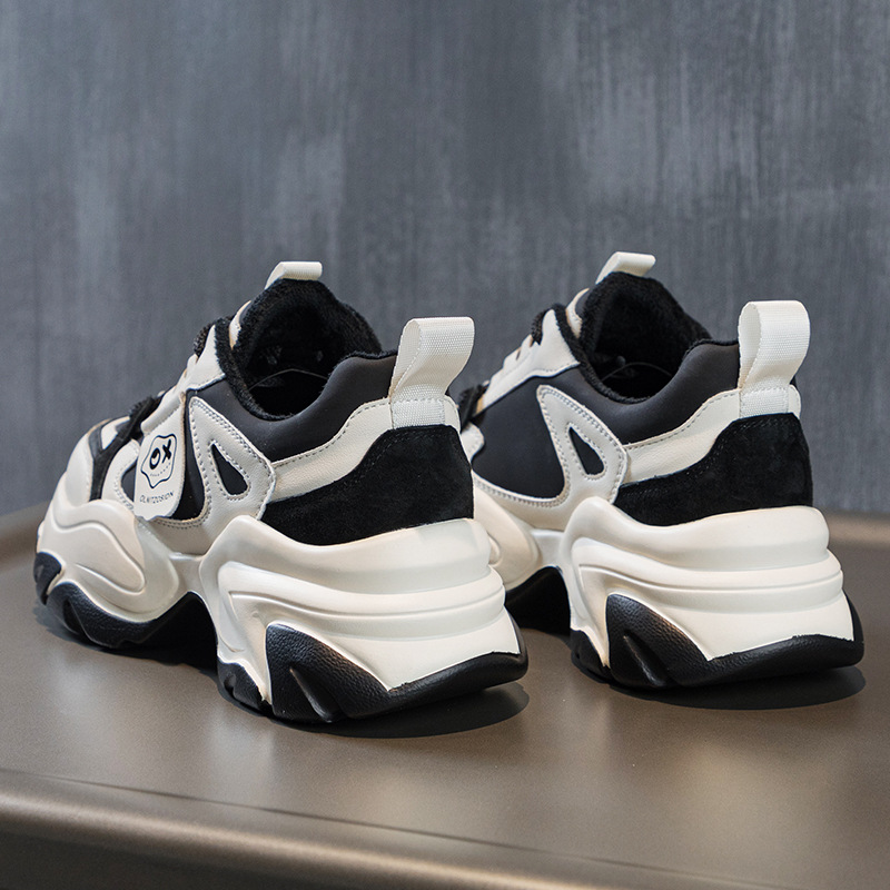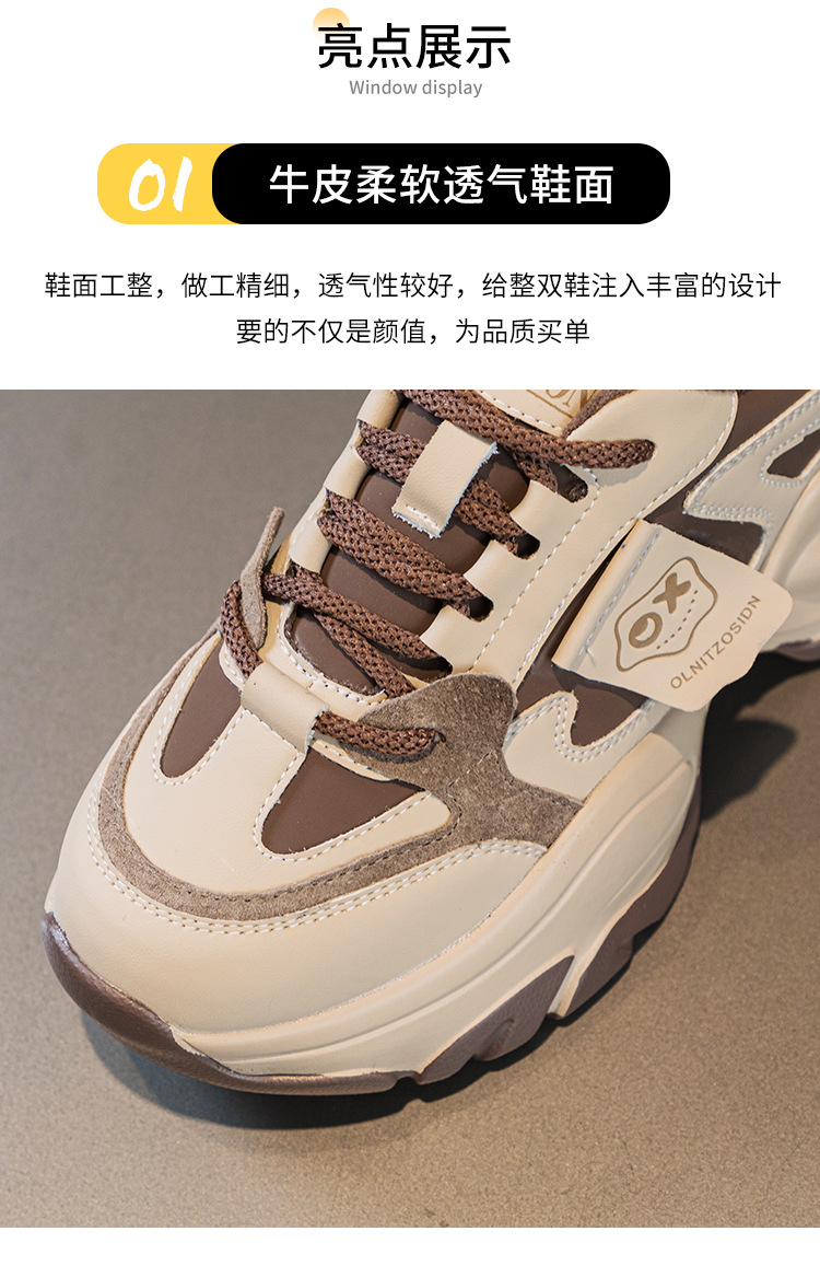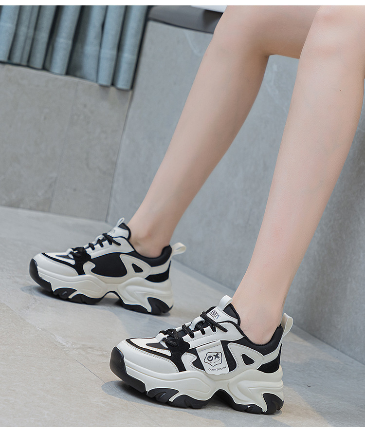 여성을위한 인기있는 두꺼운 밑창 투박한 신발 2024 봄 새로운 캐주얼 운동화 올 매치 정품 가죽 여성 신발 높이 증가 운동화
