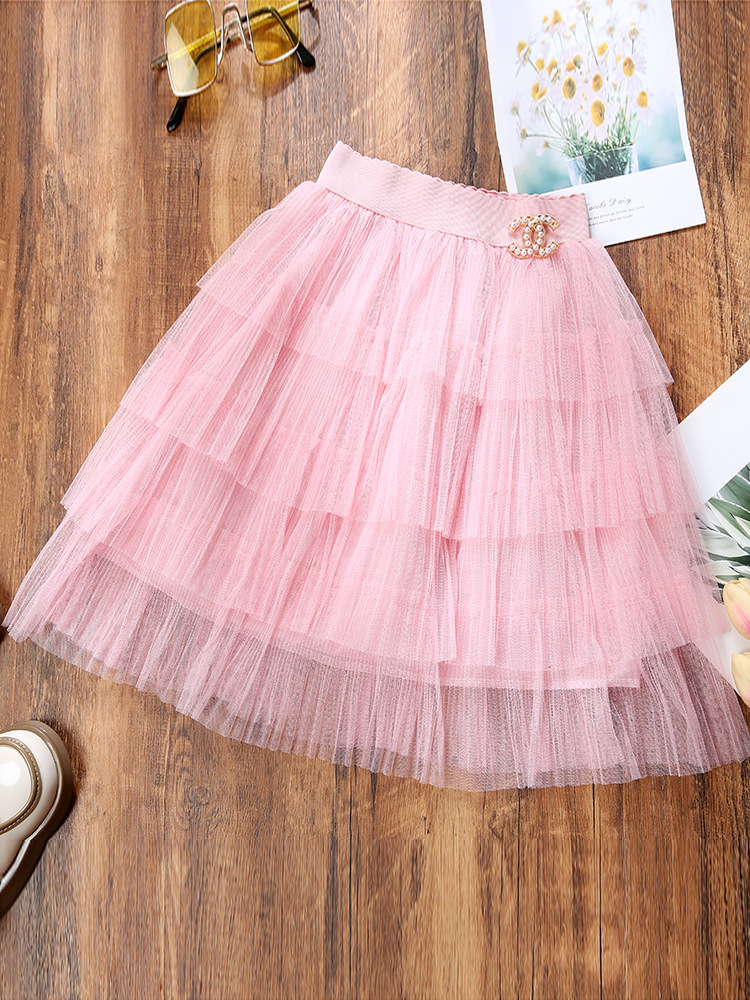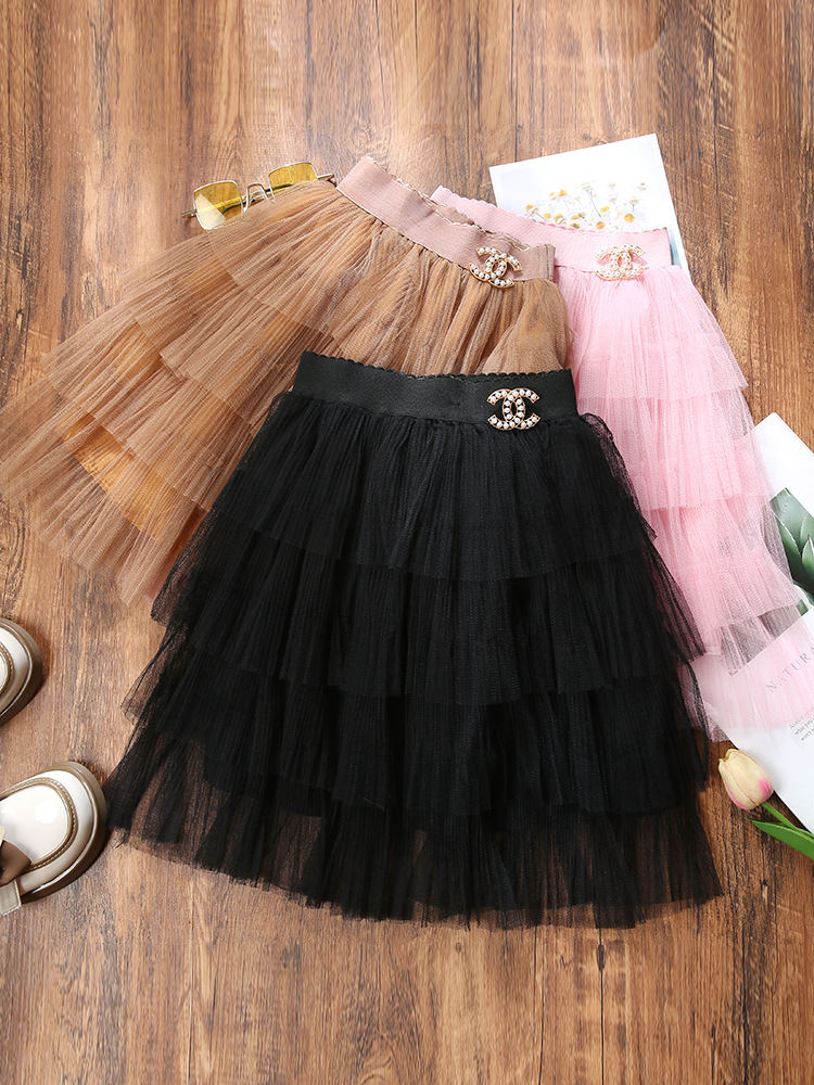 아동복 봄 가을 유럽 및 미국 수출 여아용 스커트 단색 거즈 스커트 퍼프 스커트 케이크 스커트 심플하고 우아한 어린이용