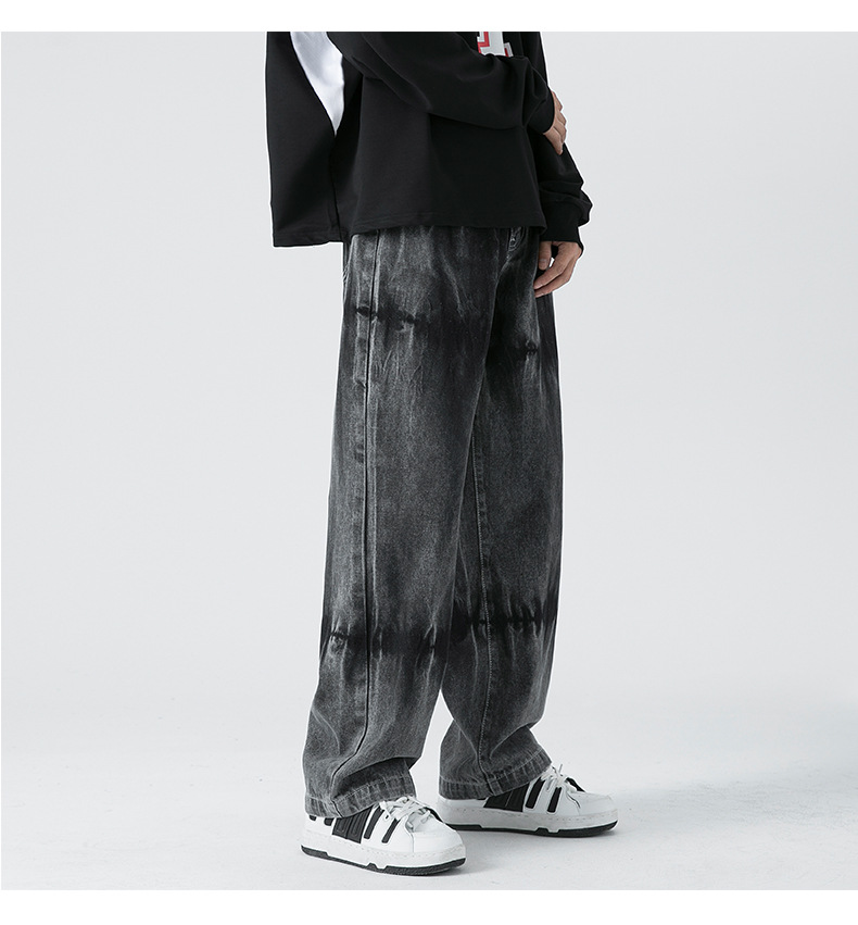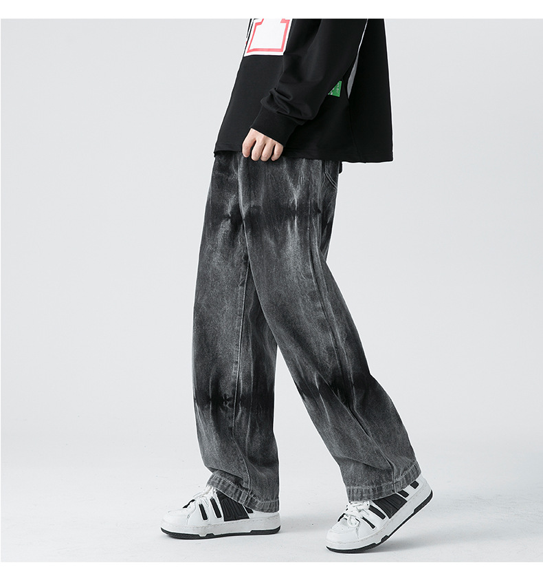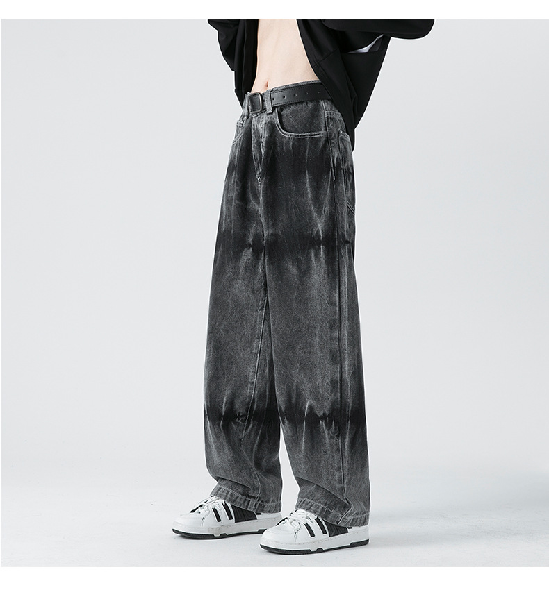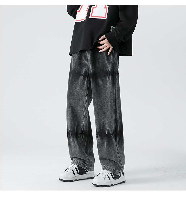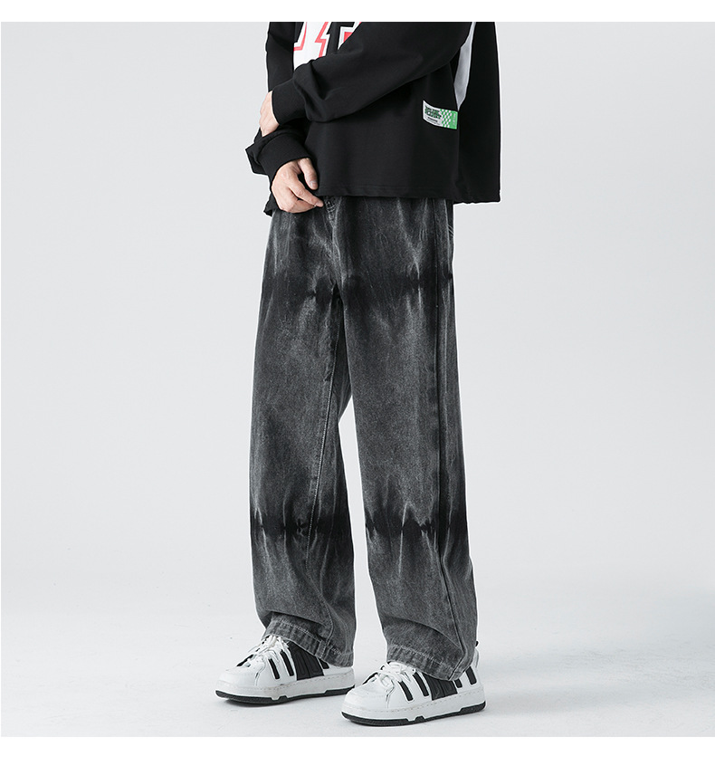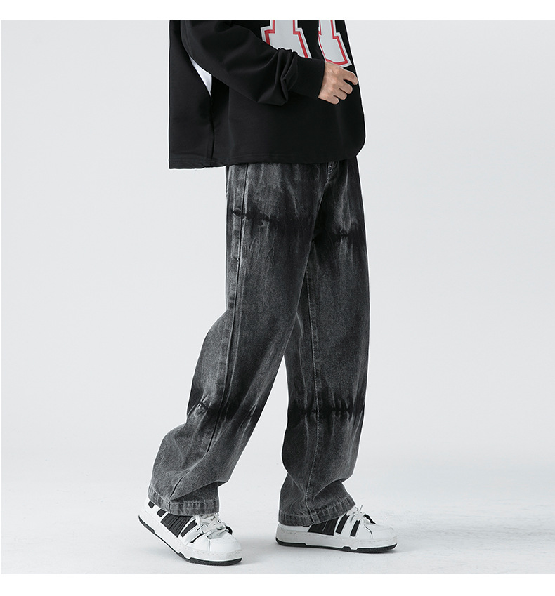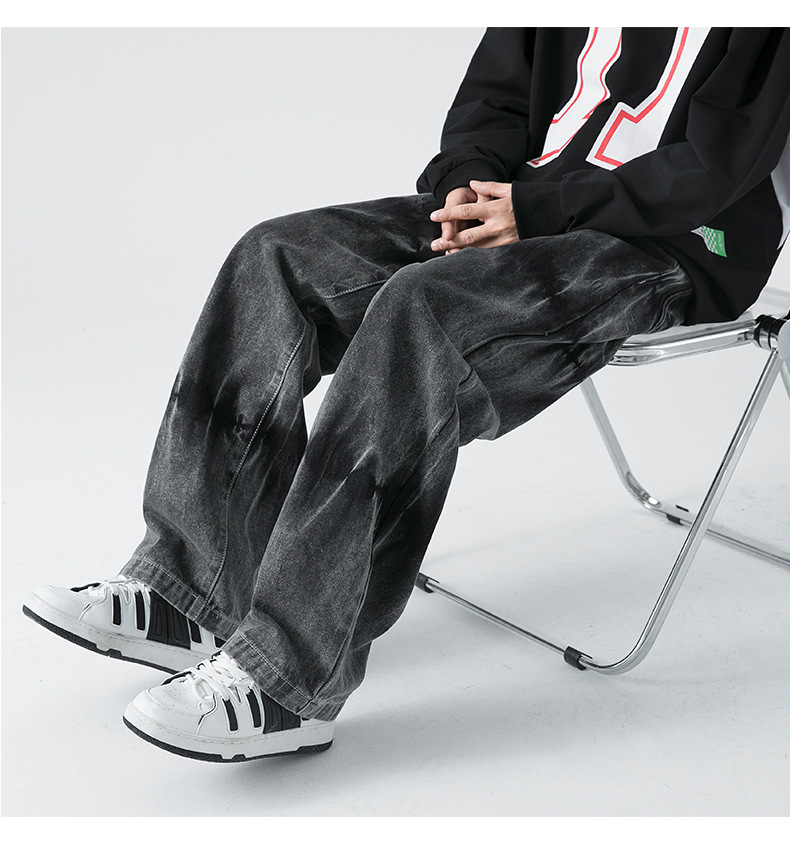 미국의 하이 스트리트 타이 염색 블랙 패션 브랜드 청바지 남성 봄과 가을 새로운 와이드 레그 스트레이트 캐주얼 올 매치 바지스토어 가기