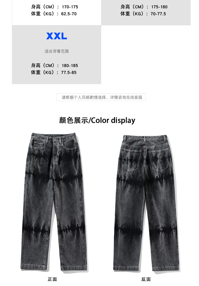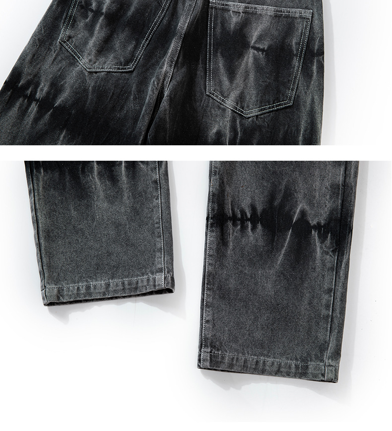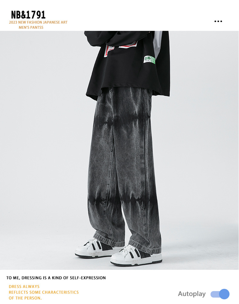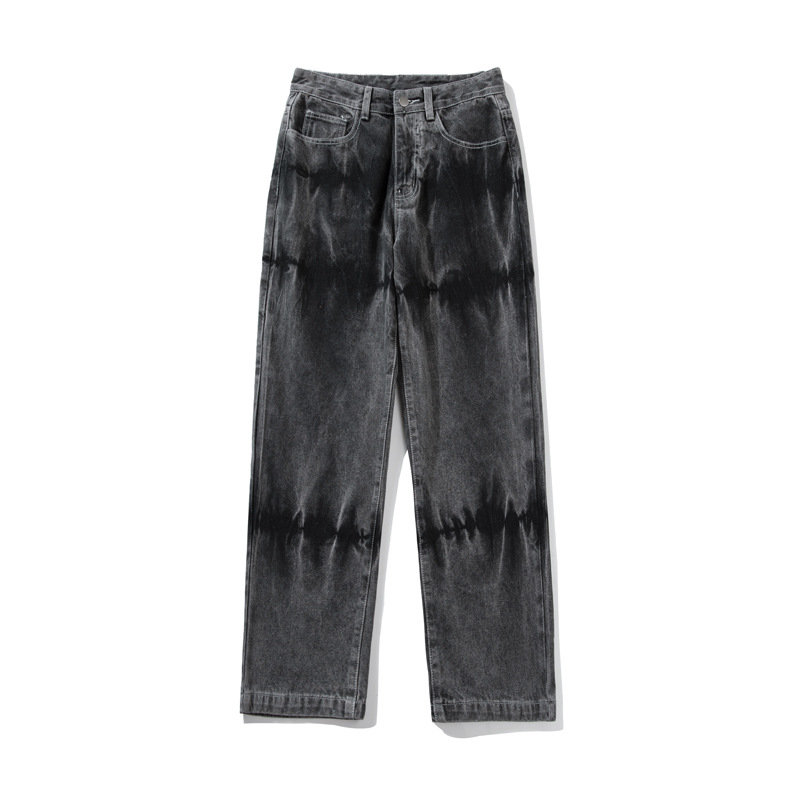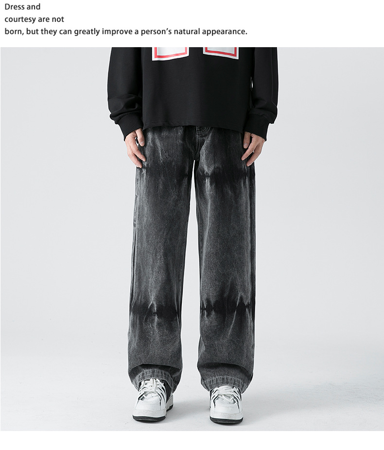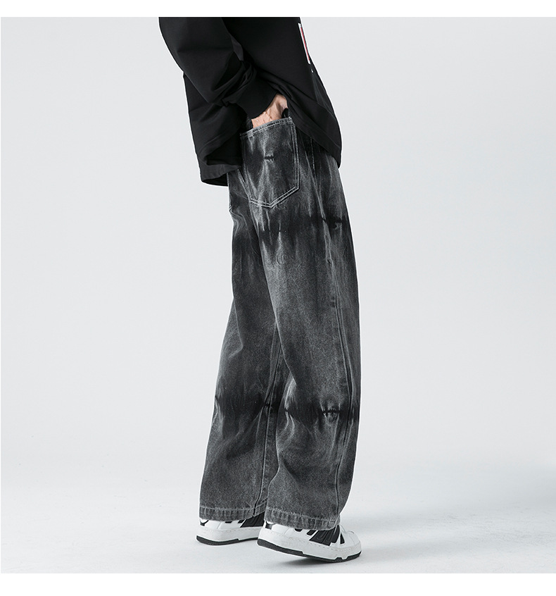 미국의 하이 스트리트 타이 염색 블랙 패션 브랜드 청바지 남성 봄과 가을 새로운 와이드 레그 스트레이트 캐주얼 올 매치 바지스토어 가기
