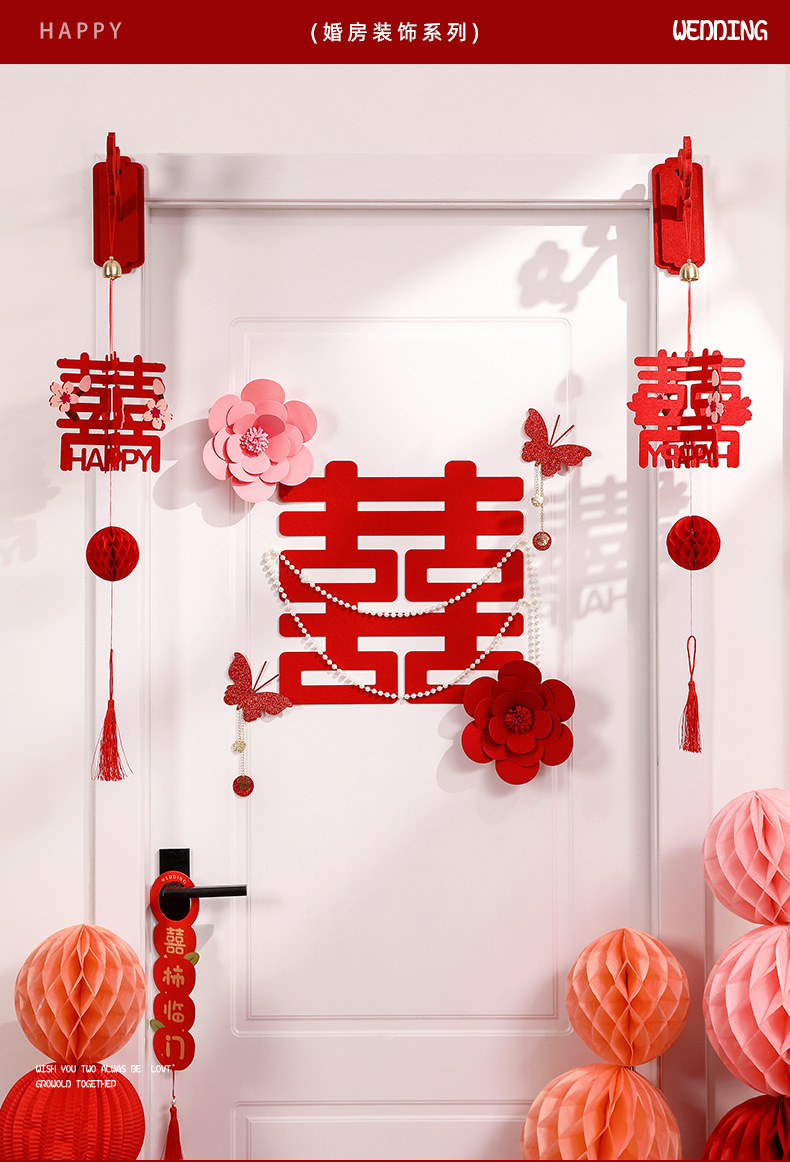 웨딩 룸 장식 세트 축제 문 Xi 캐릭터 스티커 매달려 장식 웨딩 남자와 여자 광장 침실 방 문 커튼 장식 교수형 장식