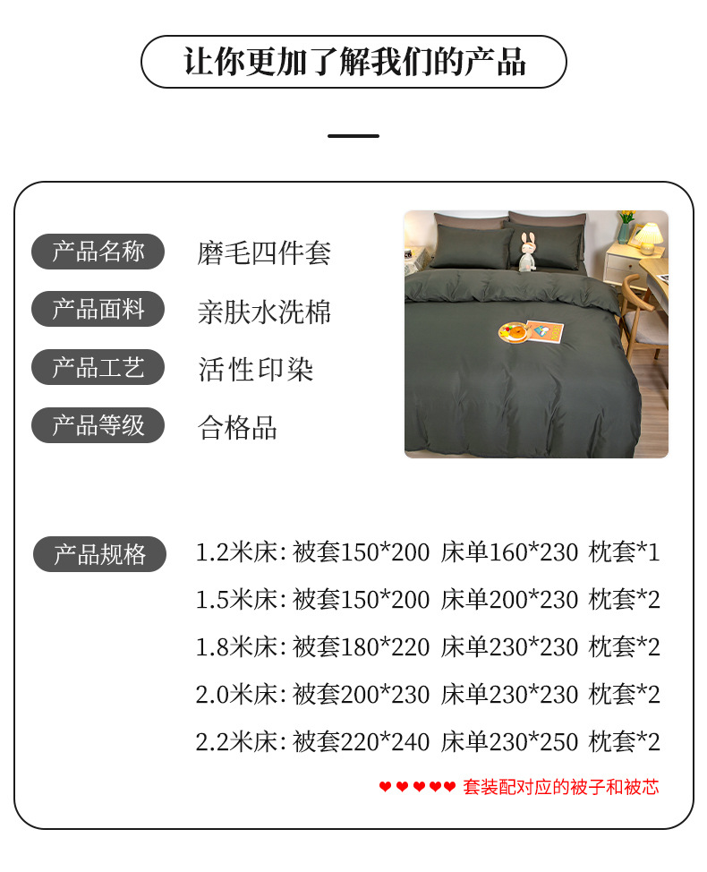 • 1.5m 침대의 4 피스 세트 [이불 커버 150x200cm 얻을 1 침대 시트 + 베갯벌 쌍]]