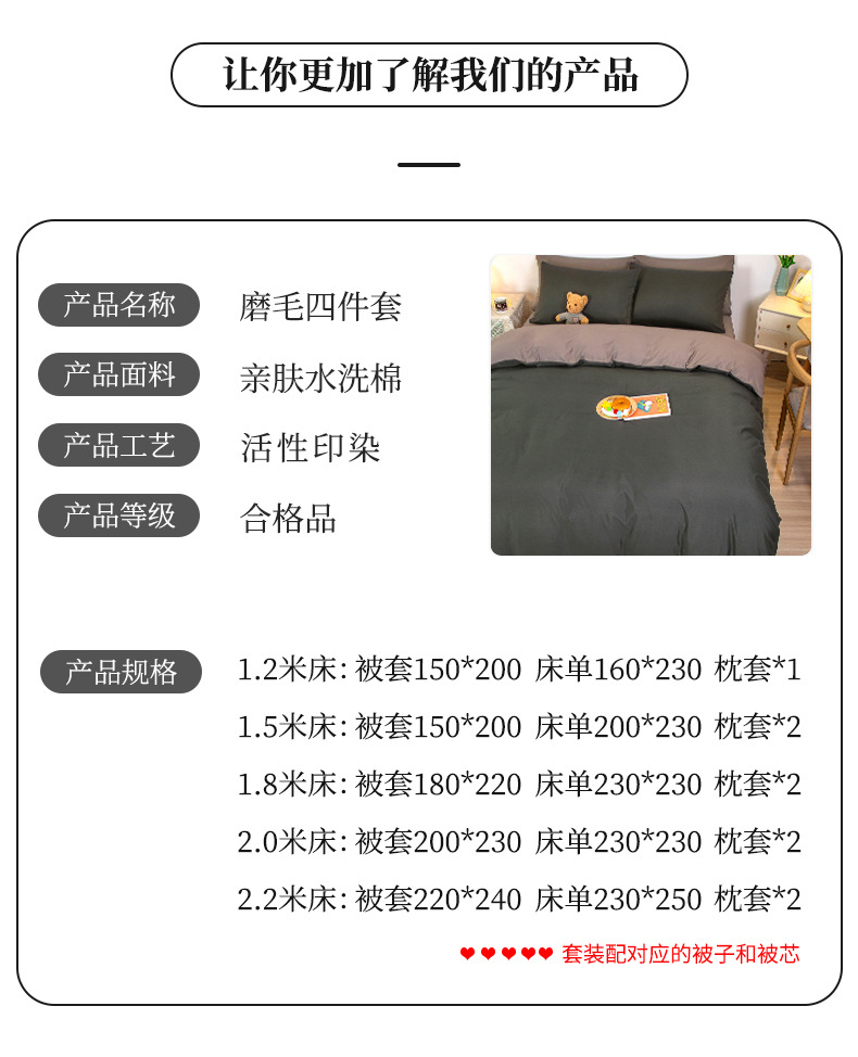 • 1.8m 침대 [4 피스 침대 시트]-180x220cm 이불 코어에 적합