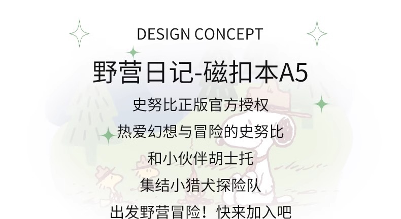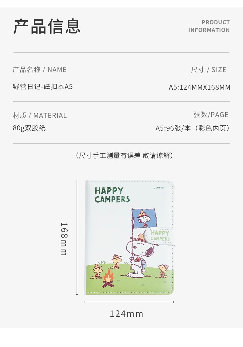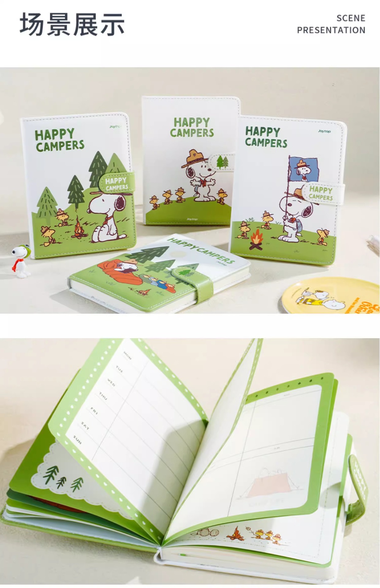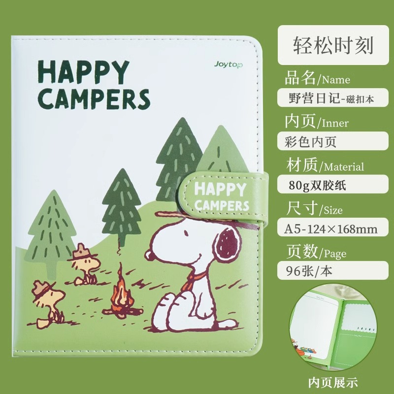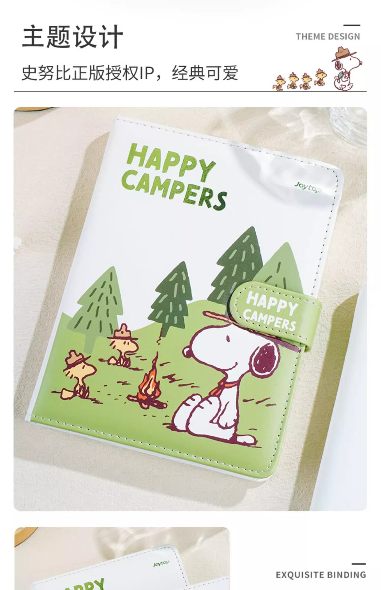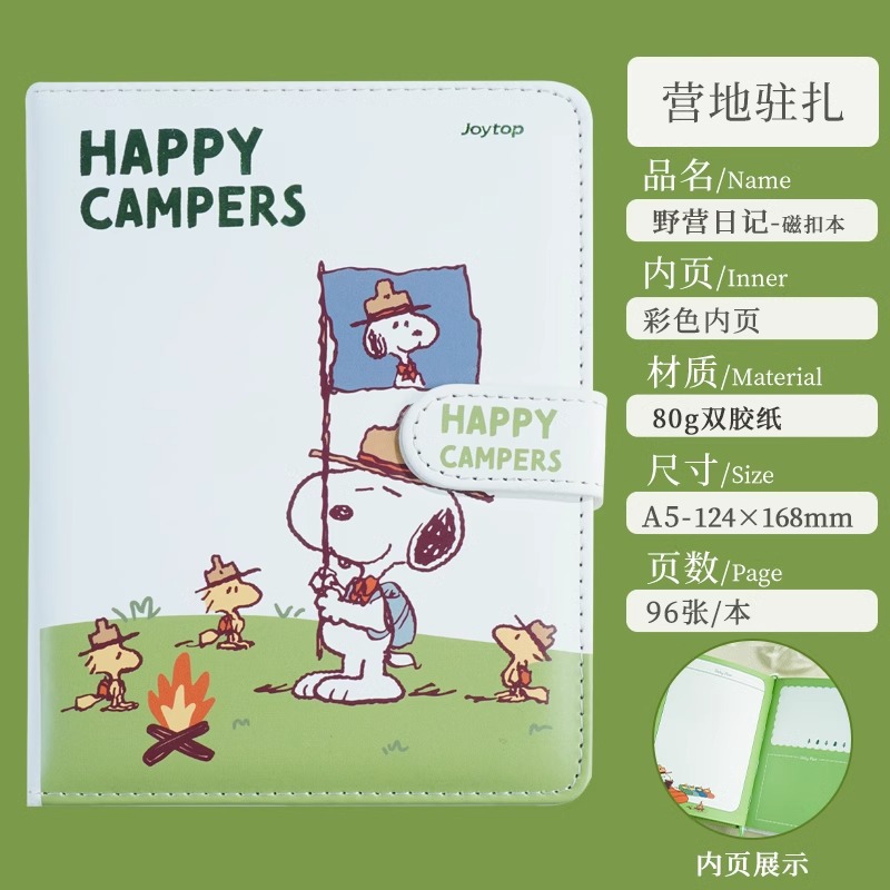 Joytop Yuemu 캠핑 일기-자기 버클 북 A5 컬러 내부 페이지 스누피 공동 만화 노트북스토어 가기