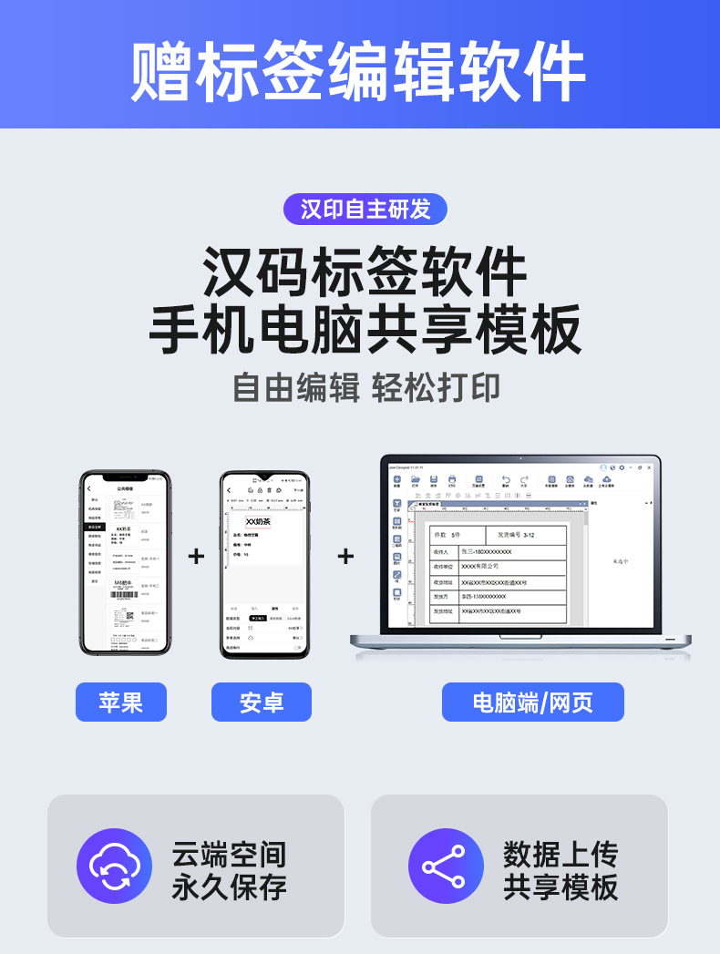 Hanyin A300E 휴대 전화 블루투스 익스프레스 단일 프린터 스테이션 라벨 기계 열 휴대용 전자 표면 단일 손