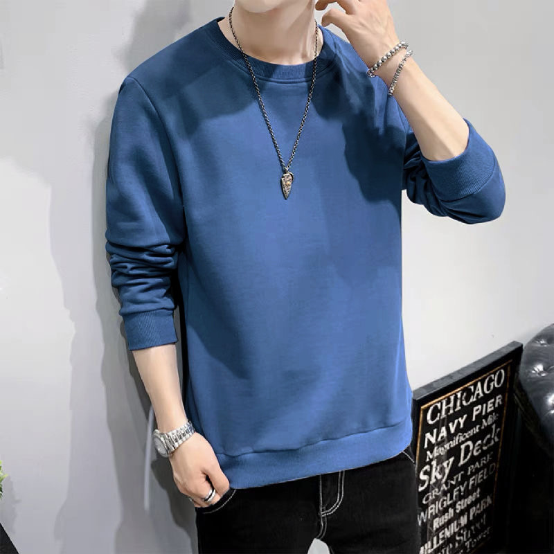 가을 새로운 라운드 넥 땀 남자의 긴 소매 간단한 인쇄 캐주얼 올 매치 얇은 솔리드 컬러 탑 스톨 공급
