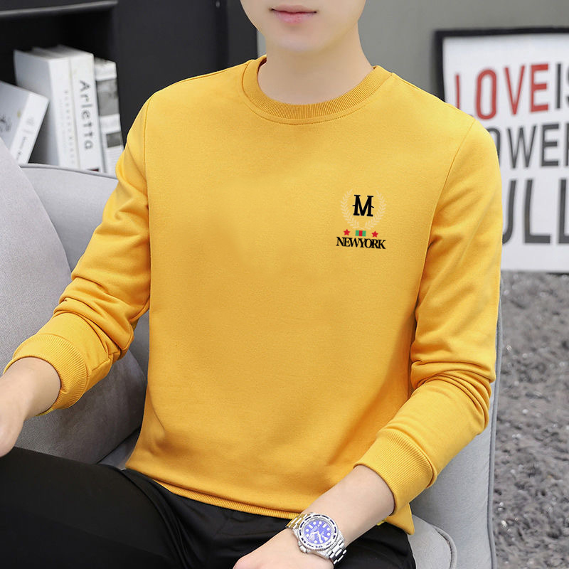 가을 새로운 라운드 넥 땀 남자의 긴 소매 간단한 인쇄 캐주얼 올 매치 얇은 솔리드 컬러 탑 스톨 공급스토어 가기