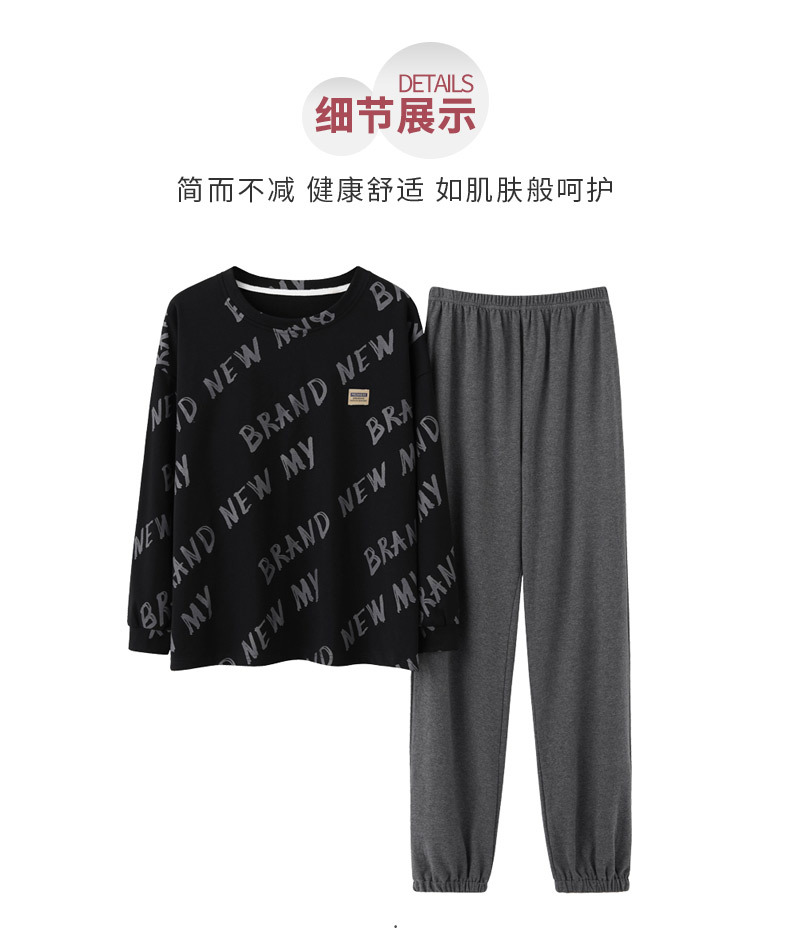 가을과 겨울 순수한면 커플 잠옷 둥근 목 풀오버 검은 슬리밍 남성 청소년 캐주얼 편안한 drawstring 따뜻한 홈웨어스토어 가기