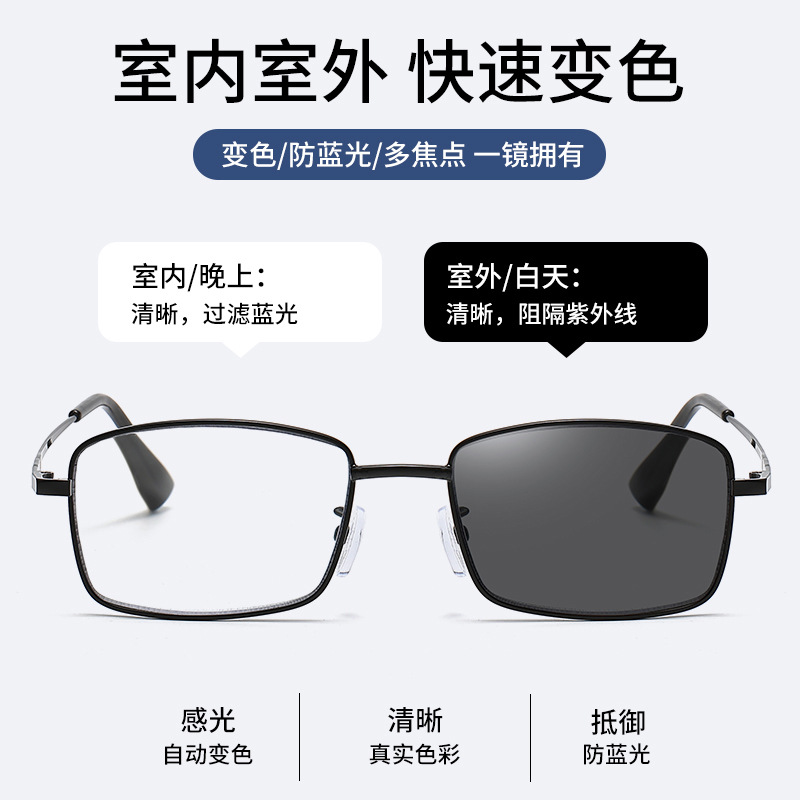 Photochromic prebyopic 안경 남성의 진보적 인 다중 초점 이중 사용 prebyopic 안경 UV 방지 광변색 prebyopic 안경
