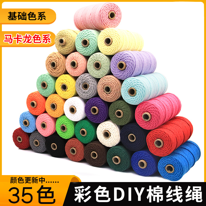 3mm 다채로운 면 로프 diy 손으로 짠 두꺼운 면 로프 짠 태피스트리 로프 바인딩 로프 장식 로프스토어 가기