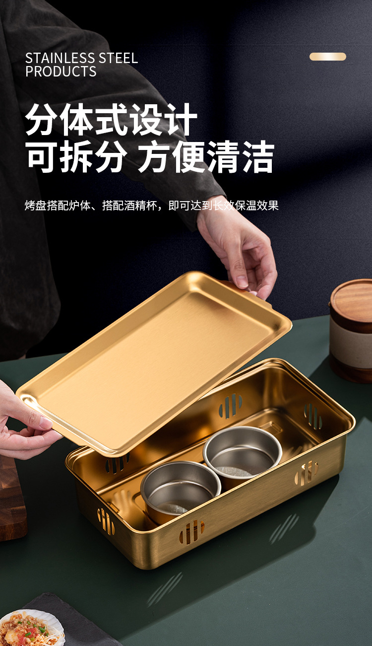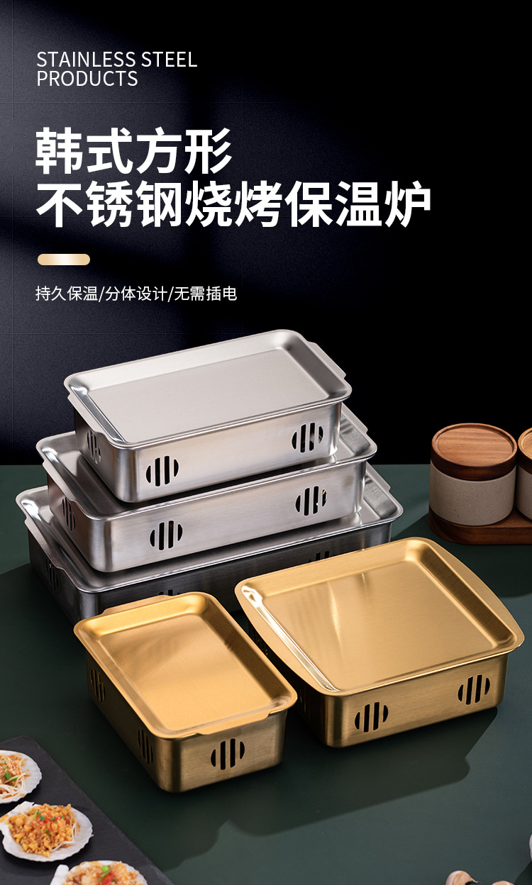 상업용 스테인레스 스틸 바베큐 열 보존 스토브 직사각형 난방 스토브 알코올 숯 오븐 스트링 향 버너 바베큐 스토브
