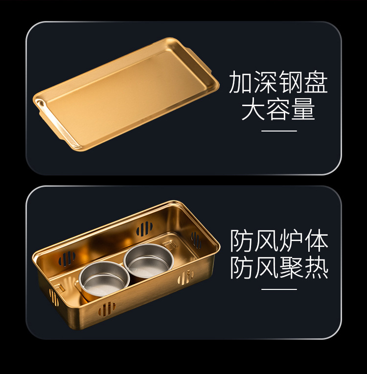상업용 스테인레스 스틸 바베큐 열 보존 스토브 직사각형 난방 스토브 알코올 숯 오븐 스트링 향 버너 바베큐 스토브스토어 가기