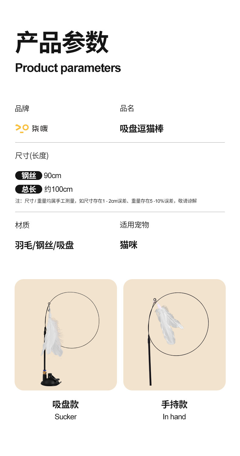 고양이 장난감 강한 흡입 컵 재미있는 고양이 스틱 강철 철사 긴 막대 셀프-안녕하세요, 깃털로 답답함 벨 애완 동물 용품 도매