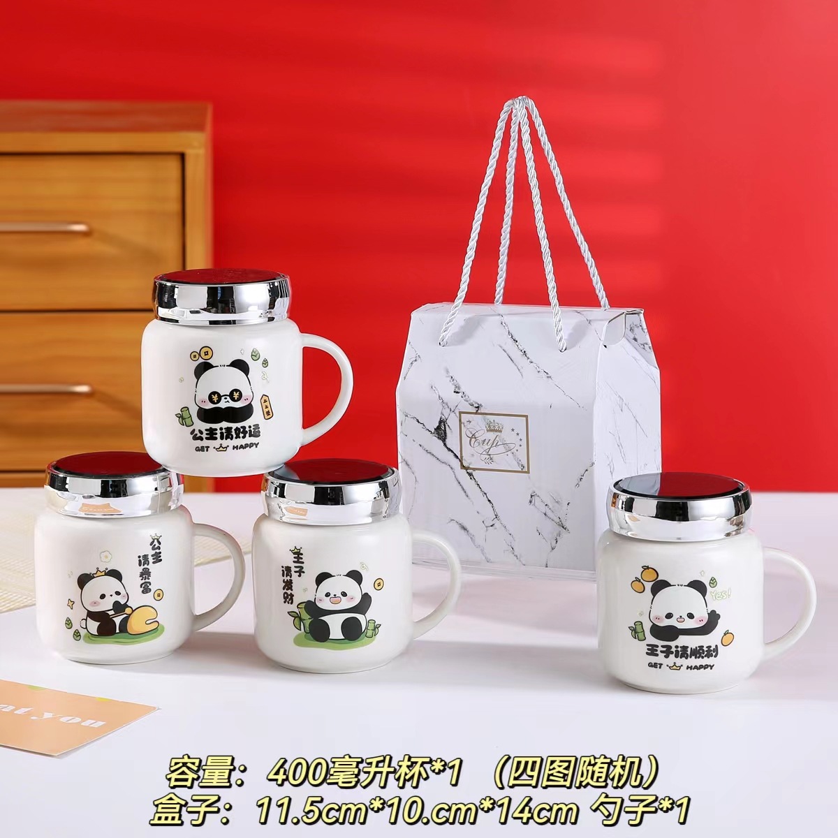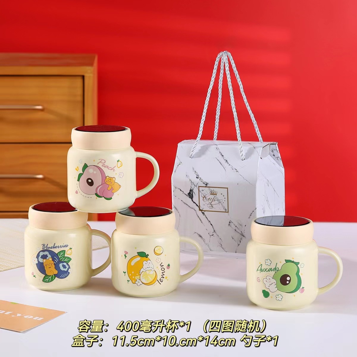 뚜껑이 달린 마카롱 밀크 옐로우 대용량 세라믹 머그잔 선물 상자 생일 선물 결혼 선물 기념품스토어 가기