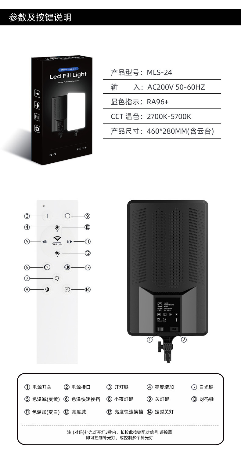 • 24 인치 얼굴 채우기 빛 + 2.1 m 브래킷