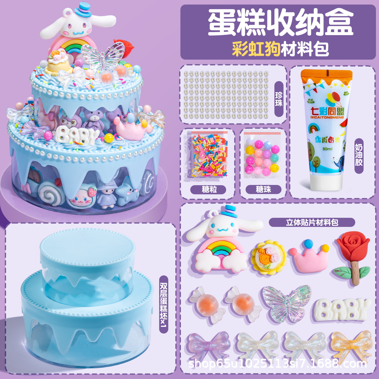 크림 접착제 케이크 저장 상자 어린이 수제 장난감 소녀 diy 보석 케이크 소재 생일 선물 도매
