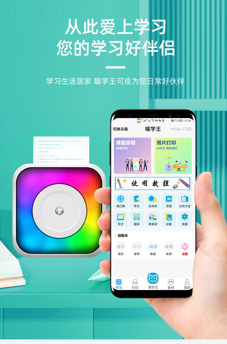 • C31 흰색 5 롤 열 종이 5 롤 접착 스티커 3 롤 컬러 열 종이 6 색 펜