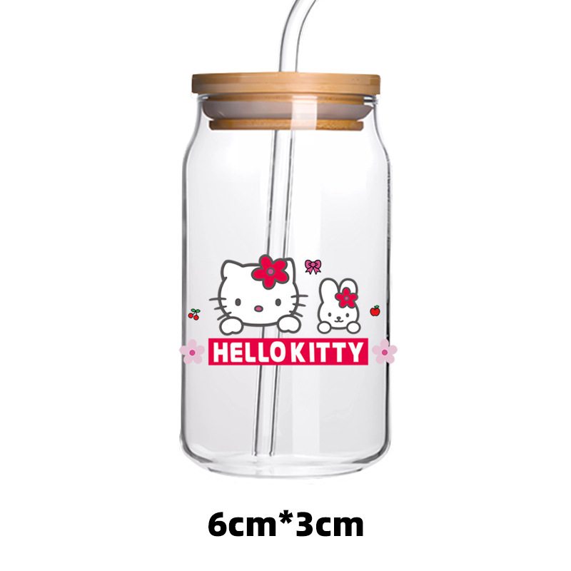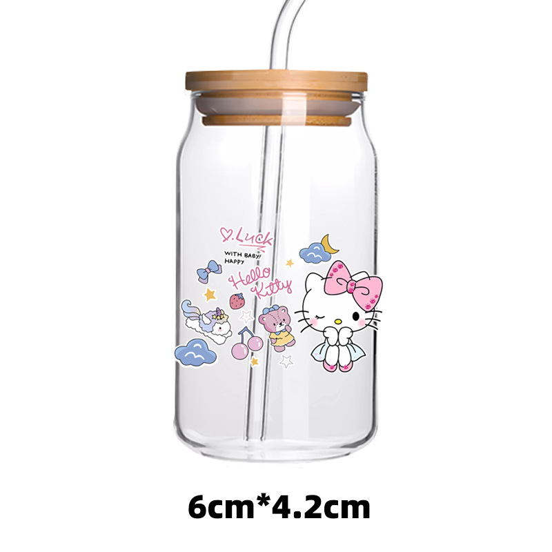 애니메이션 UV 전송 스티커 투명 크리스탈 로고 귀여운 새끼 고양이 사랑 활 유리 스티커 방수 장식 스티커스토어 가기
