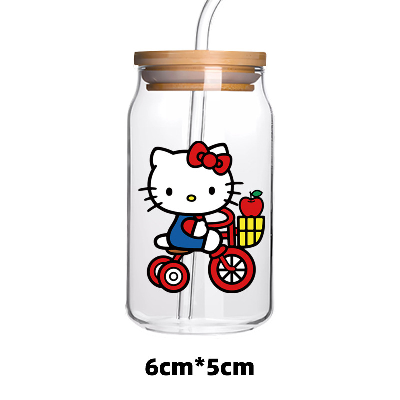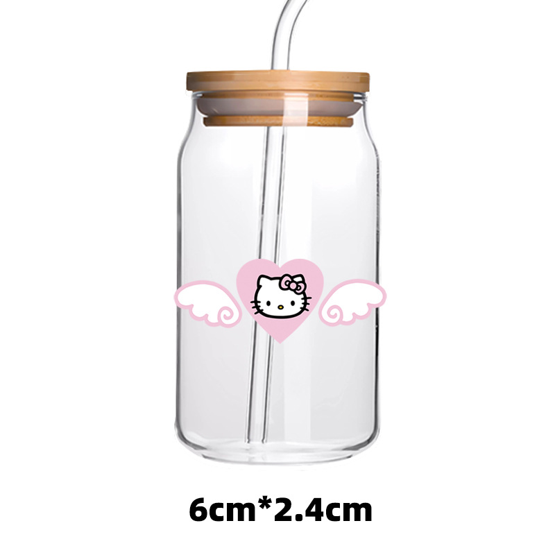 애니메이션 UV 전송 스티커 투명 크리스탈 로고 귀여운 새끼 고양이 사랑 활 유리 스티커 방수 장식 스티커