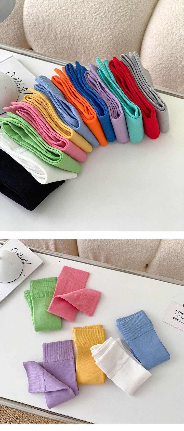송아지 양말 여성용 도파민 캔디 컬러 뼈없는 가을과 겨울 컬러 중반 종아리 길이 양말면 무릎 길이 스포츠 스타킹스토어 가기