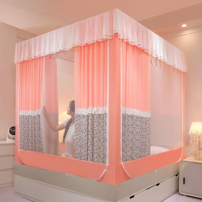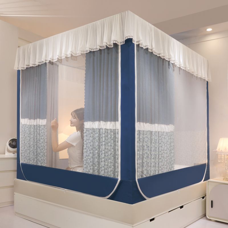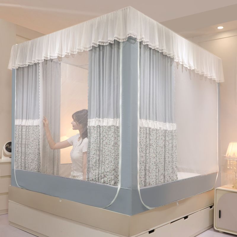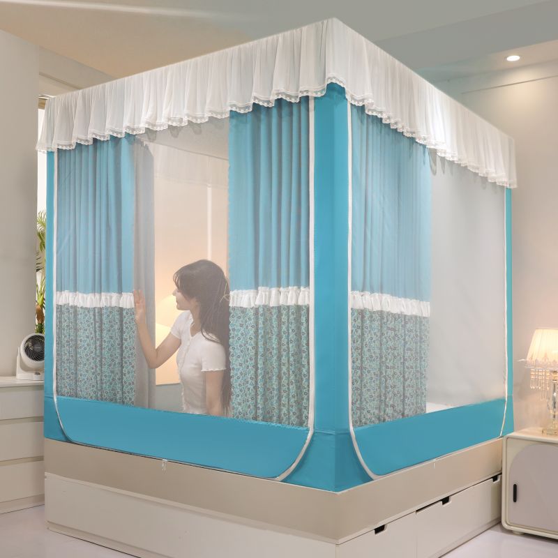 회형 바닥형 몽골 텐트 모기장 어린이 낙상 방지, 모기 차단, 빛 차단, 지퍼, 3개의 개폐문이 있는 침대 커튼, 한국식 신형