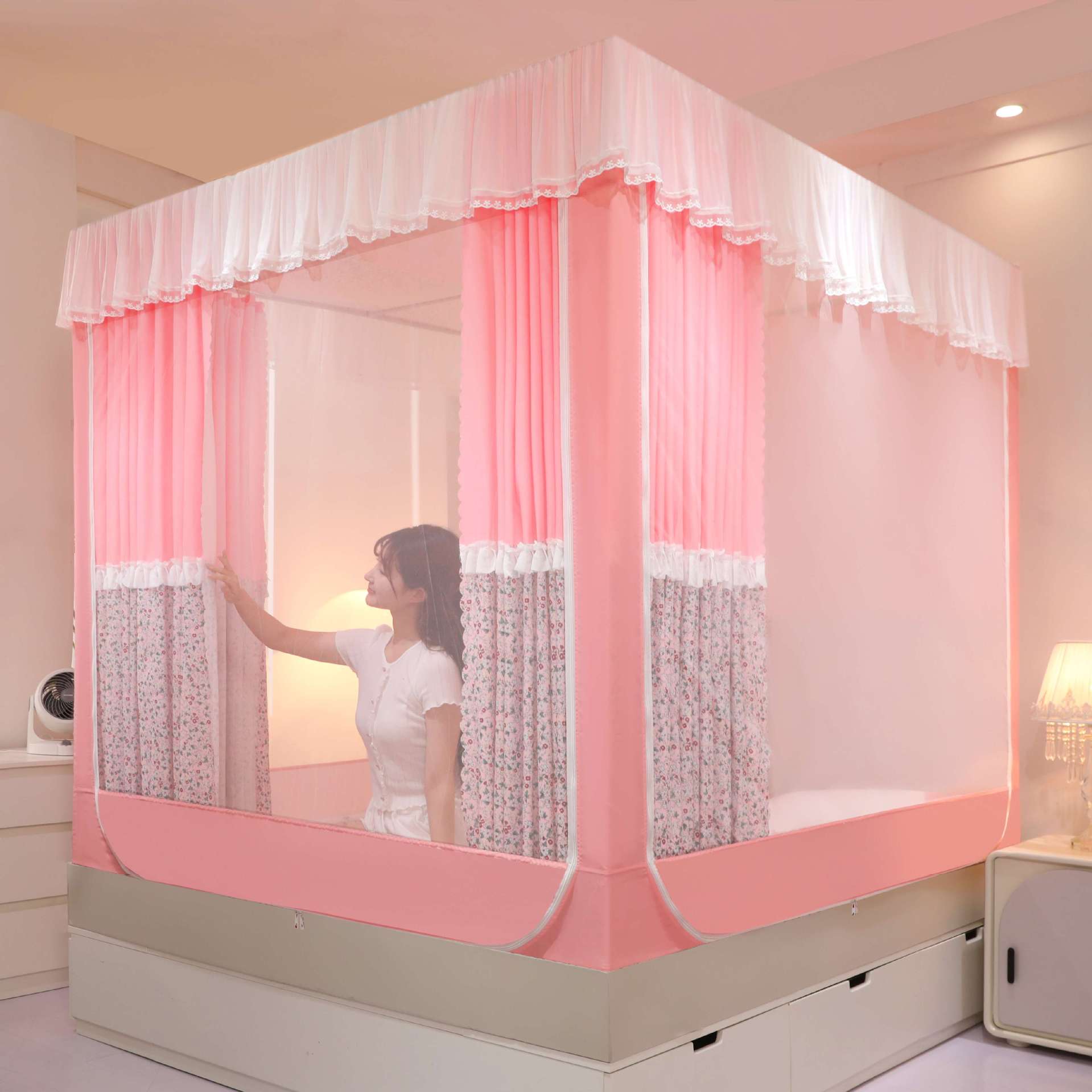 회형 바닥형 몽골 텐트 모기장 어린이 낙상 방지, 모기 차단, 빛 차단, 지퍼, 3개의 개폐문이 있는 침대 커튼, 한국식 신형스토어 가기
