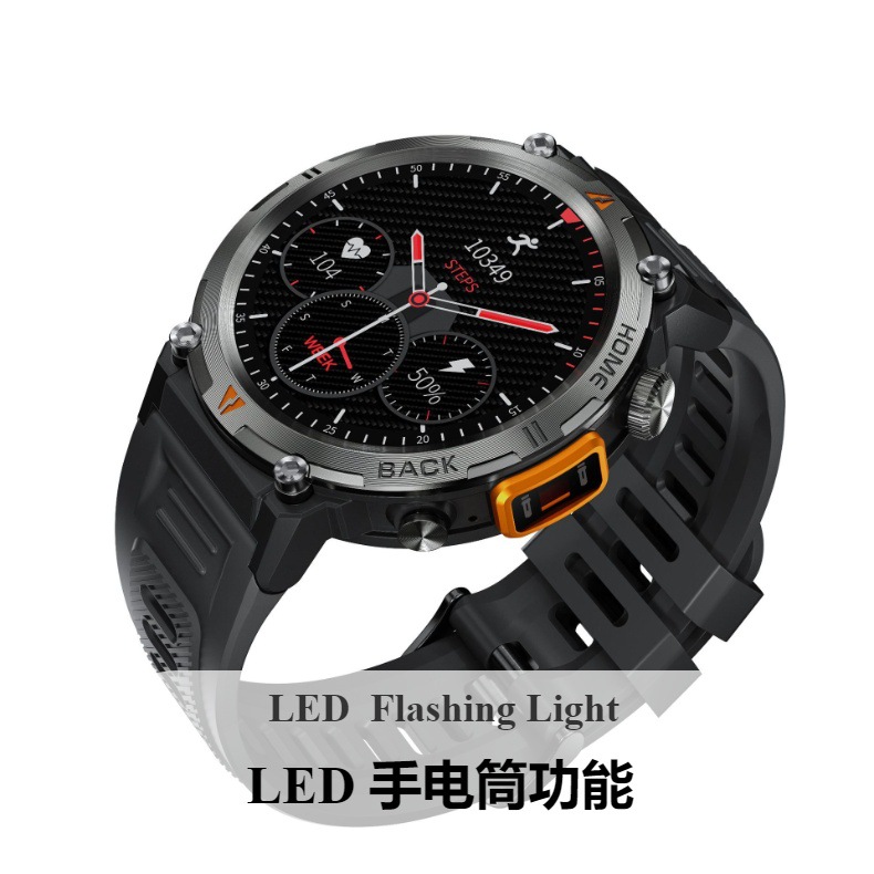 KE3 국경 LED 손전등 1.45 스크린 블루투스 전화 시계 심박수 혈액 산소 수면 운동 3atm