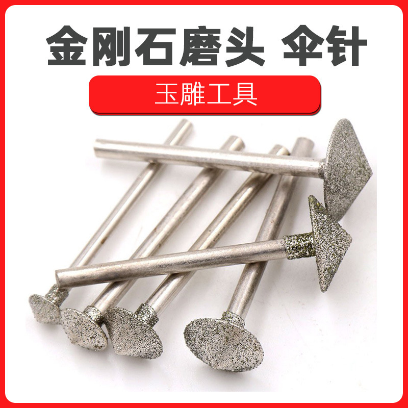 두껍고 얇은 우산 바늘 다이아몬드 연삭 헤드 연삭 휠 연삭 바늘 Chamfering Bell 입 안전 버클 만들기 옥 조각 도구 드릴 커터 헤드스토어 가기