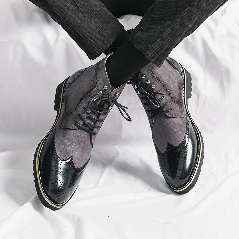 국경 간 가을과 겨울 새로운 남성 하이 탑 가죽 부츠 비즈니스 트렌드 캐주얼 레트로 패션 레이스 업 청소년 가죽 신발