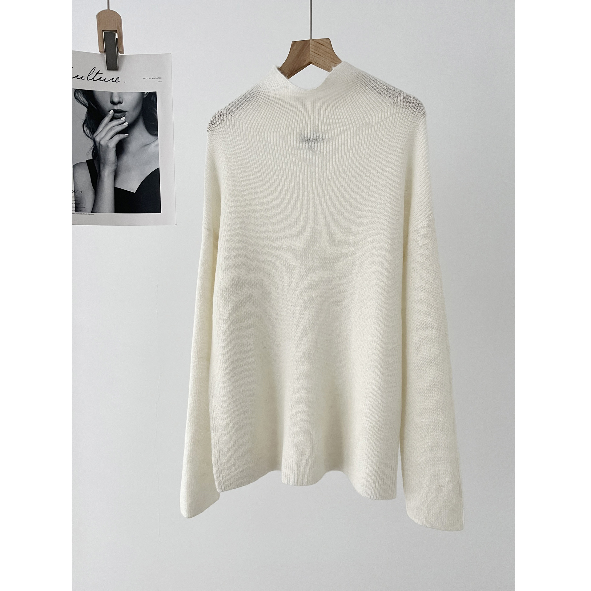 Md 스타일 여성 의류 간단한 스타일 바닥 부드러운 Nuo 풀오버 약간 투명 베이지 하프 터틀넥 스웨터