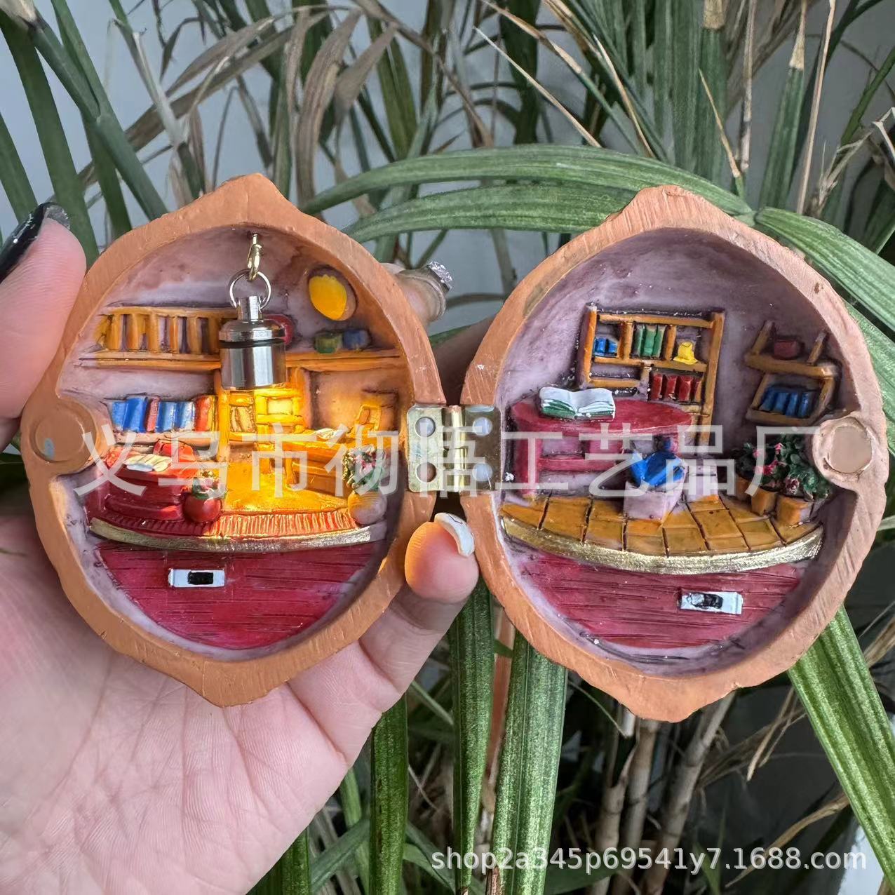 跨境新品 迷你图书馆Walnut Shell doll house树脂小世界娃娃屋