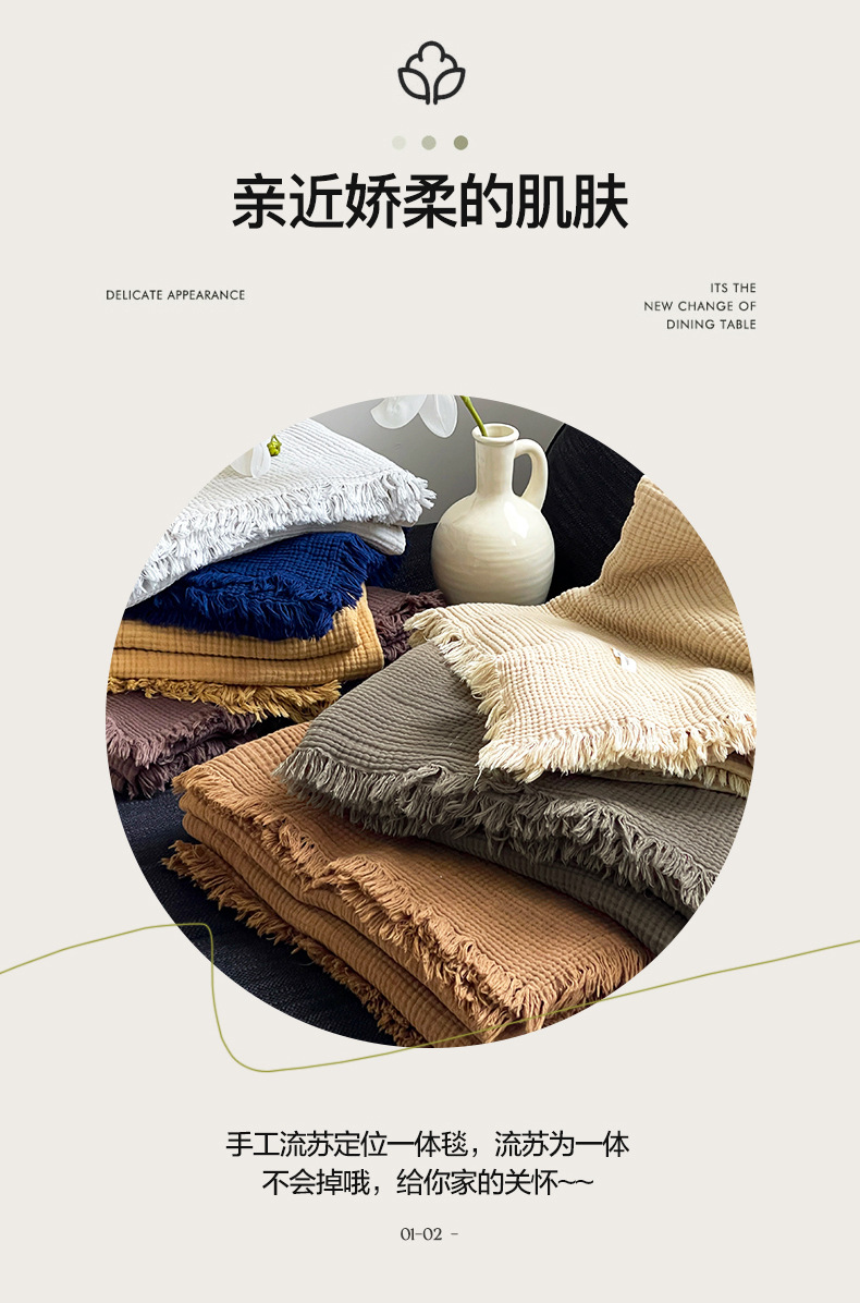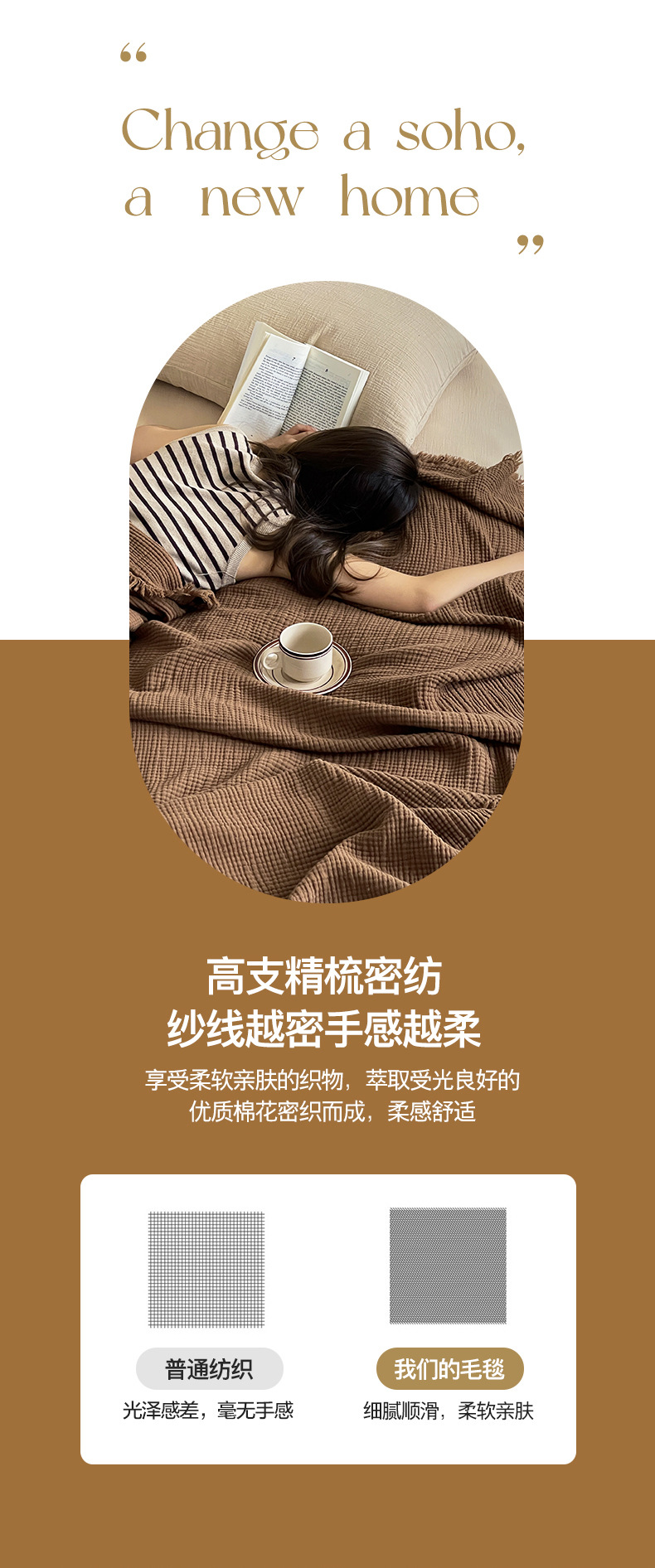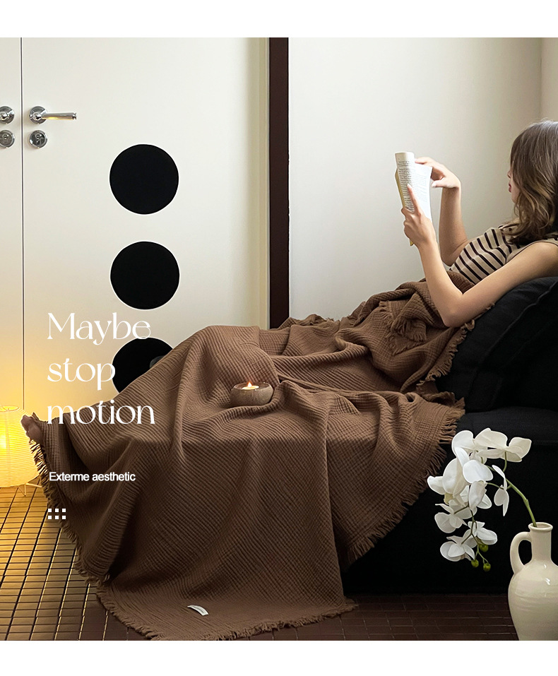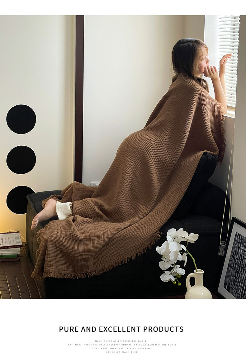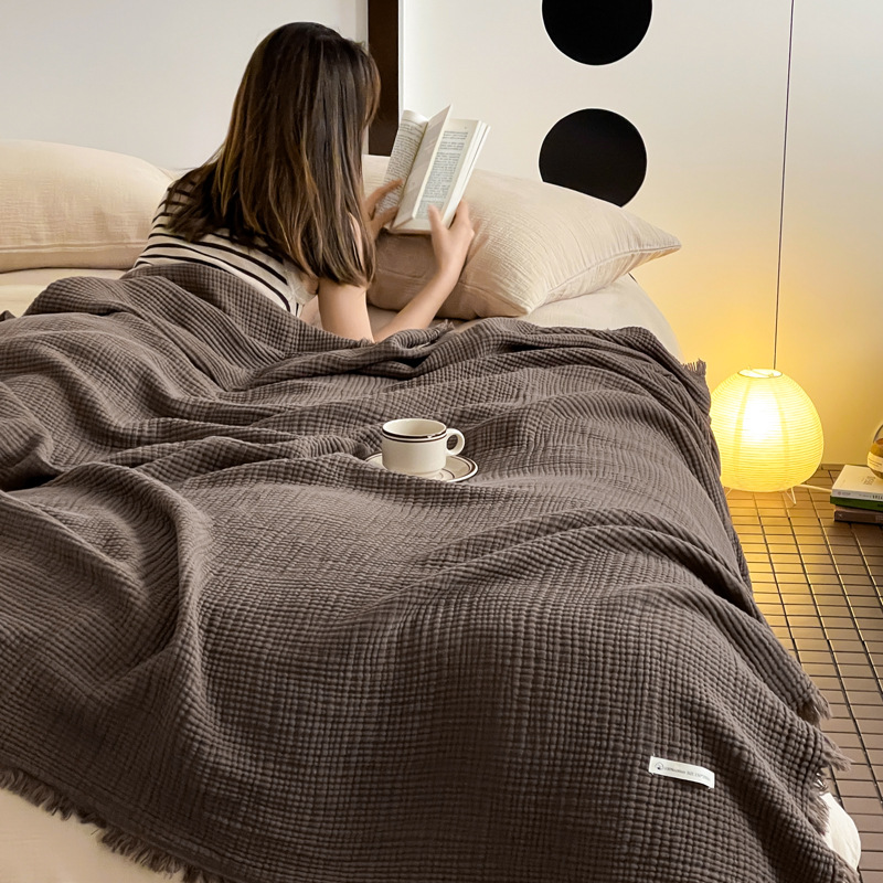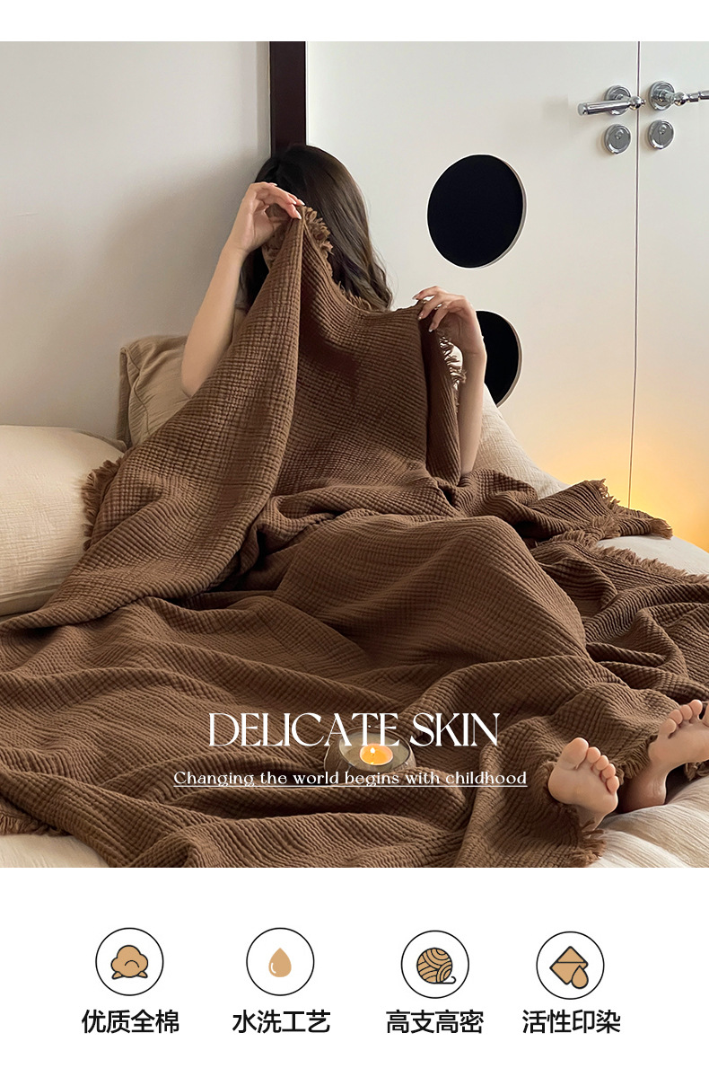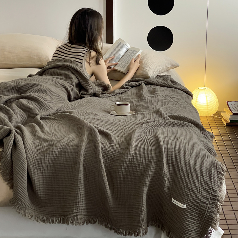Yuchuan 선호, Maillard 4 층 주름 실 술 담요 면화 낮잠 담요 호텔 에어컨 담요
