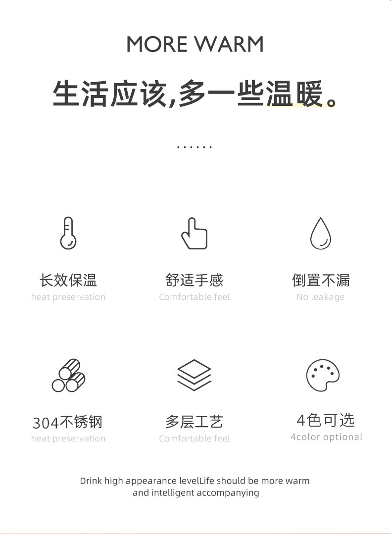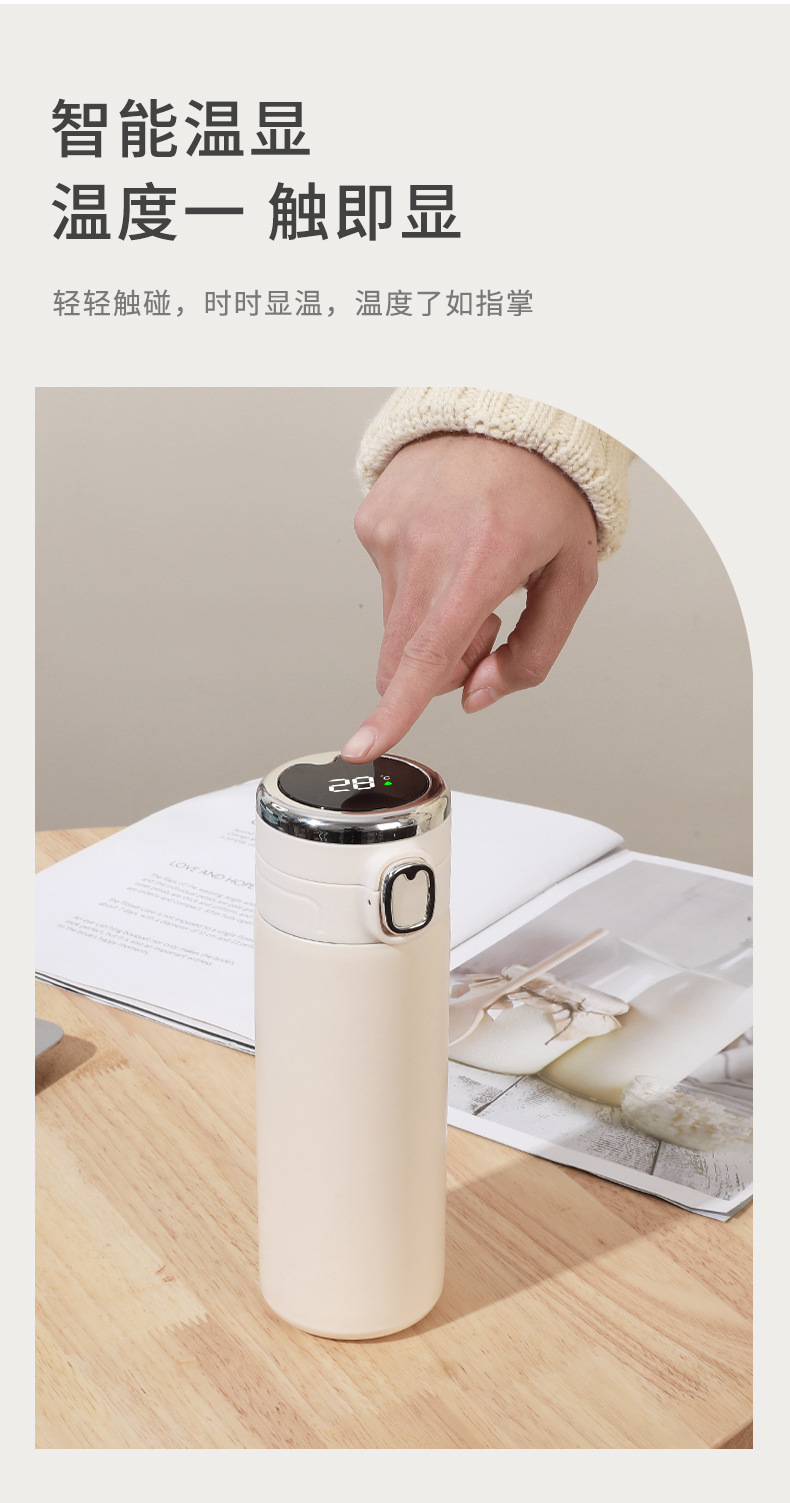 여학생을위한 간단한 완두콩 컵 304 스테인레스 스틸 진공 워터 컵 교체 가능한 배터리 튀는 스마트 보온병 컵 사용자 정의스토어 가기