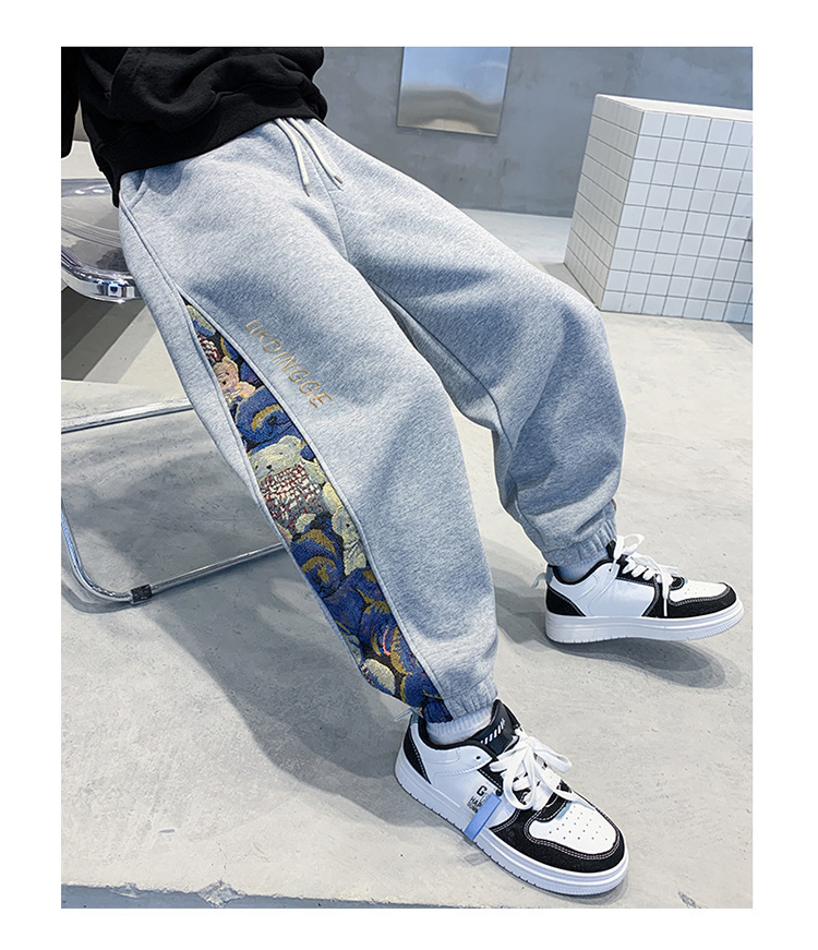 남학생 겨울복 기모 바지 2023 신식 중대형 어린이 가을과 겨울 스포츠 바지 소년 두꺼운 운동복 유행