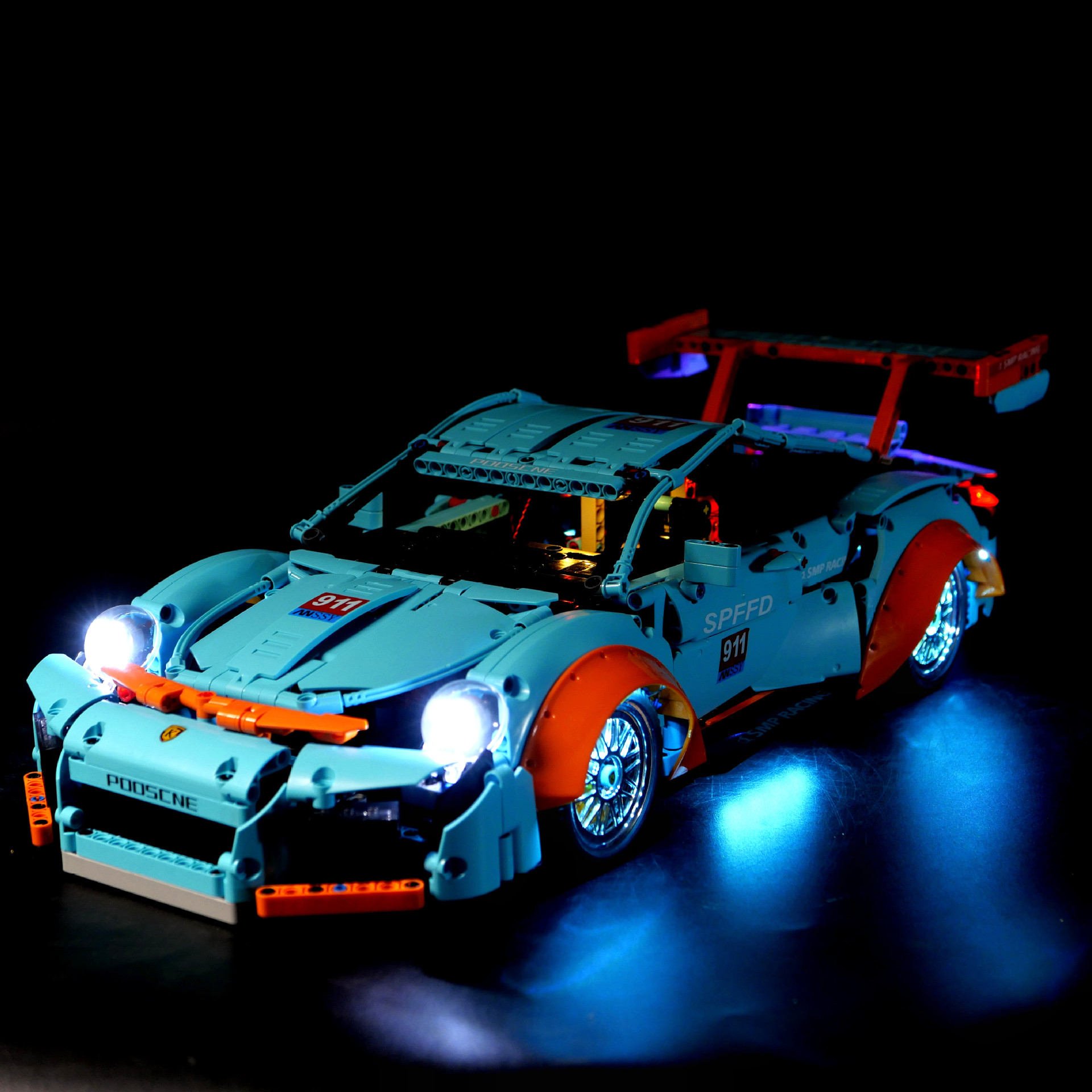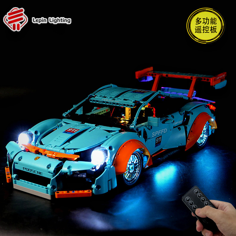 레고 K 박스 10216 낮은 거짓말 럭셔리카 로고 GT3 기술 폭발 변화 911 원격 제어 조명과 호환되는 DIY 빌딩 블록 조명스토어 가기