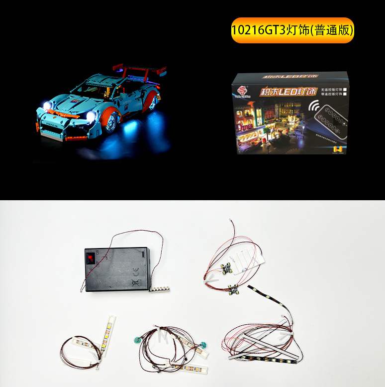 레고 K 박스 10216 낮은 거짓말 럭셔리카 로고 GT3 기술 폭발 변화 911 원격 제어 조명과 호환되는 DIY 빌딩 블록 조명