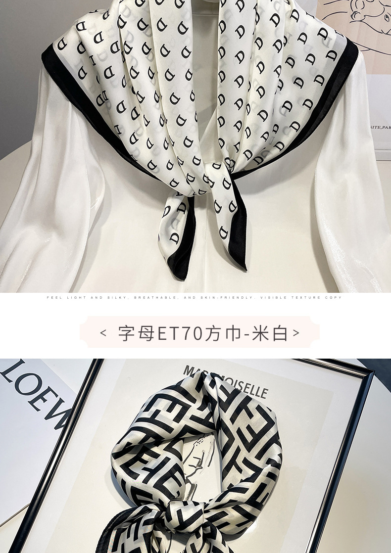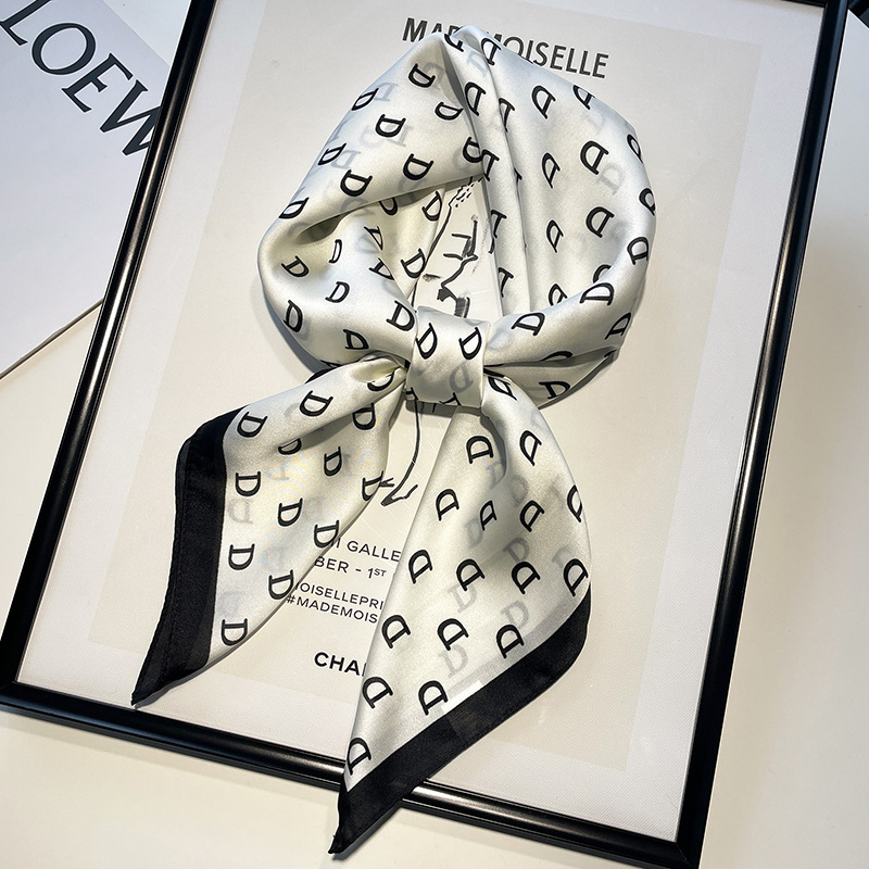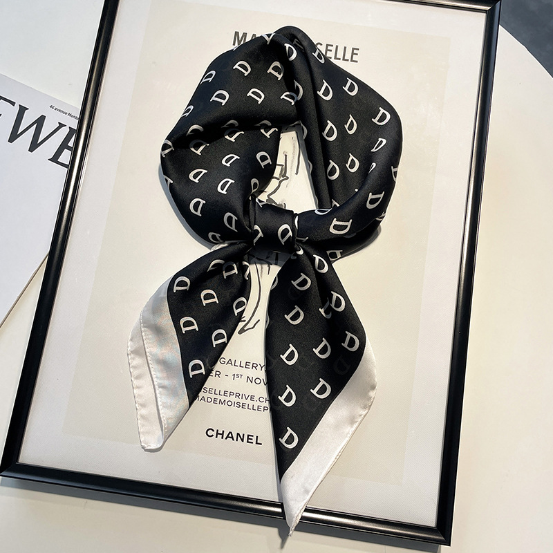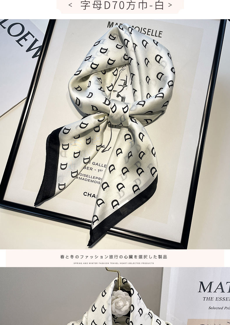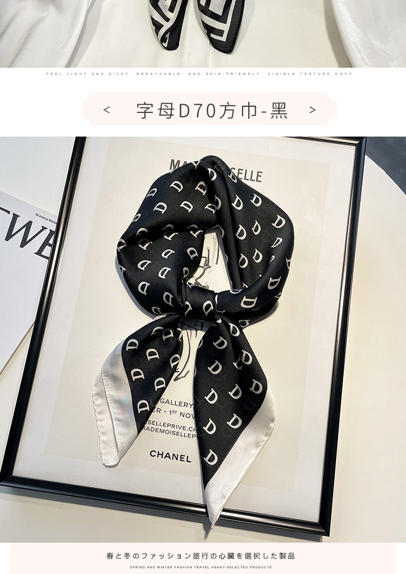 흑백 편지 d 작은 사각형 스카프 여성의 봄과 가을 어울리는 셔츠 비즈니스 착용 목 보호 스카프 얇은 스카프 70x70