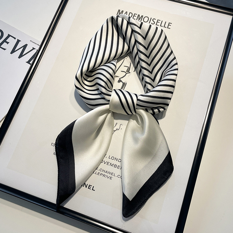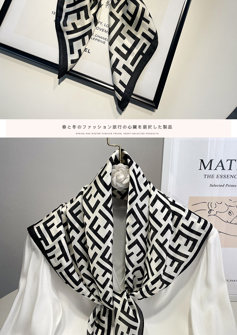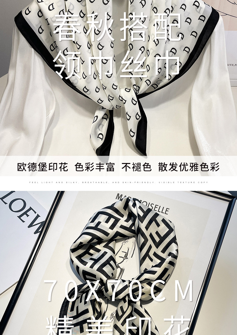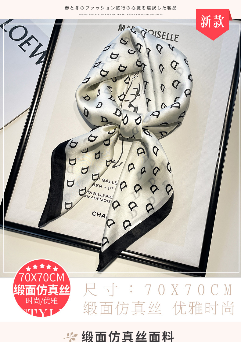 흑백 편지 d 작은 사각형 스카프 여성의 봄과 가을 어울리는 셔츠 비즈니스 착용 목 보호 스카프 얇은 스카프 70x70