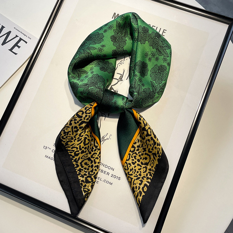 • 레오파드 무늬 프레임 70 사각형 스카프 다크 그린