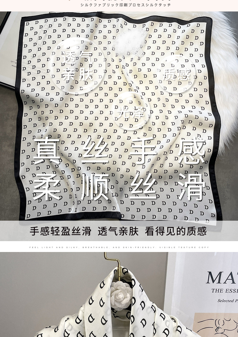 흑백 편지 d 작은 사각형 스카프 여성의 봄과 가을 어울리는 셔츠 비즈니스 착용 목 보호 스카프 얇은 스카프 70x70스토어 가기
