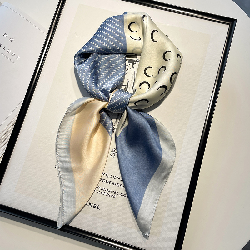 • 초승달 헤링본 70 스퀘어 스카프-스카이 블루