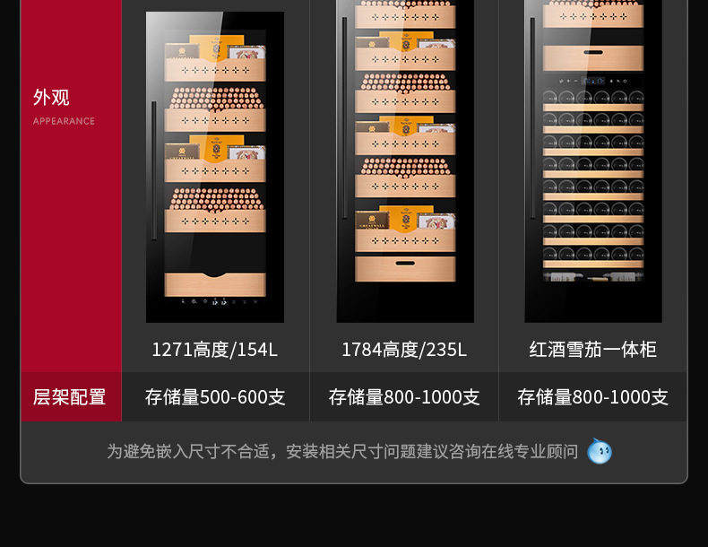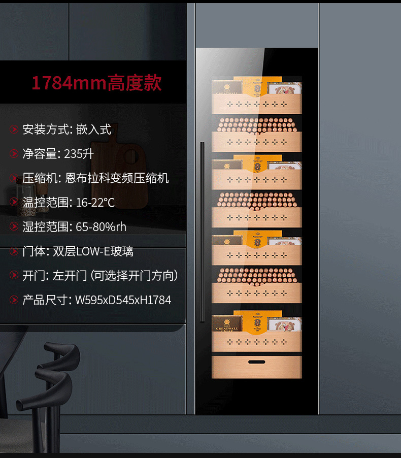 • 1784mm 높은 와인 시가 통합 캐비닛