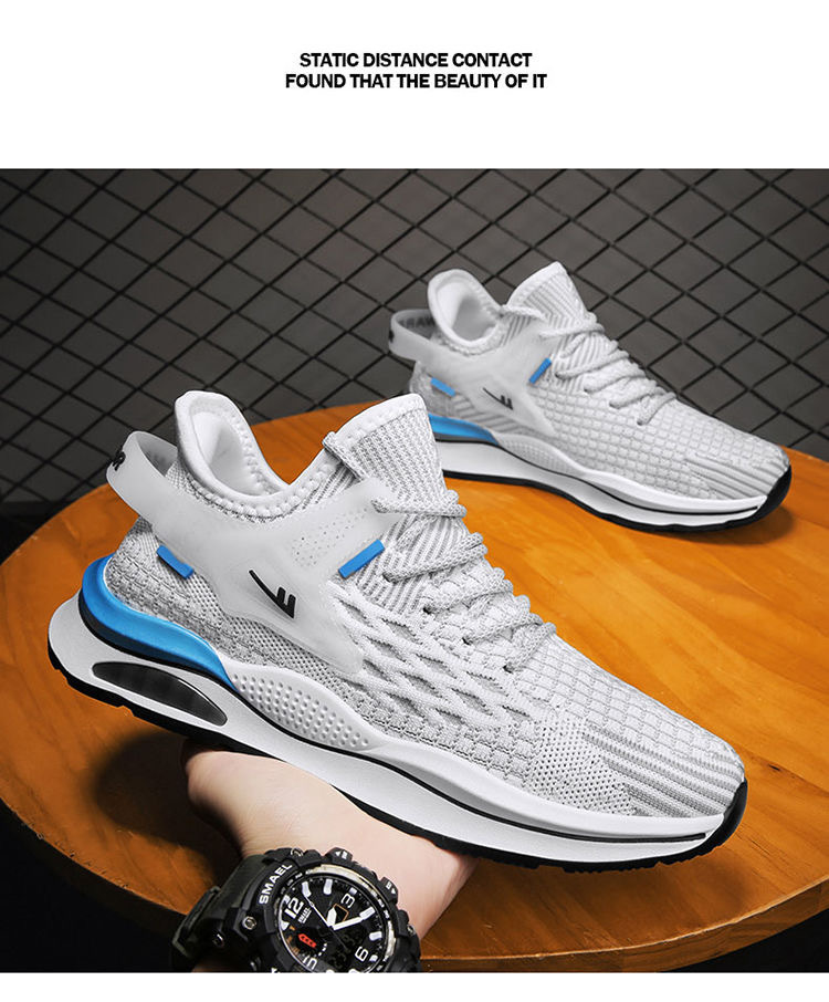 국산 남성 신발 2024 봄 여름 한국 스타일 다용도 틈새 시장 플라이 니트 러닝화 통기성 트렌디 다용도 아빠 신발