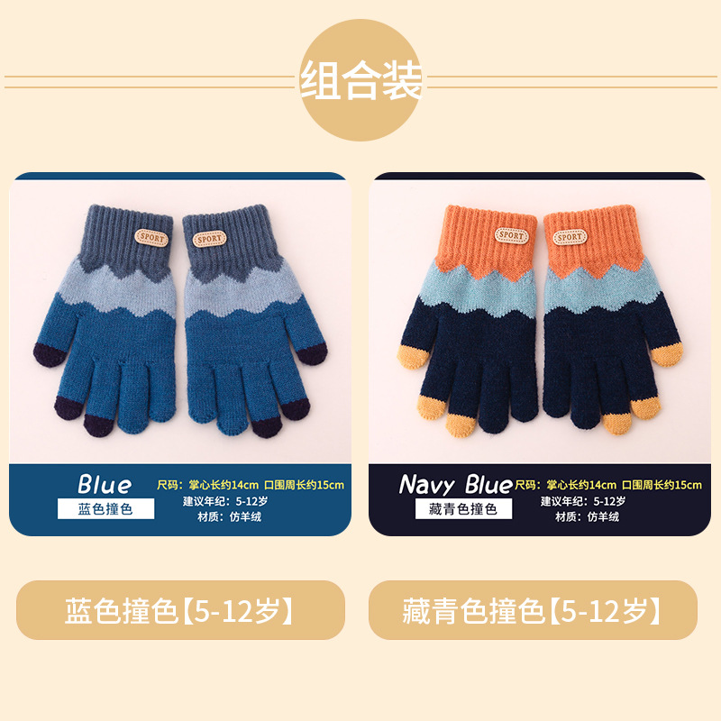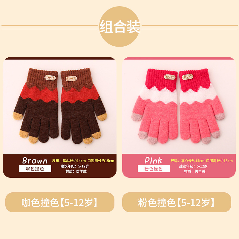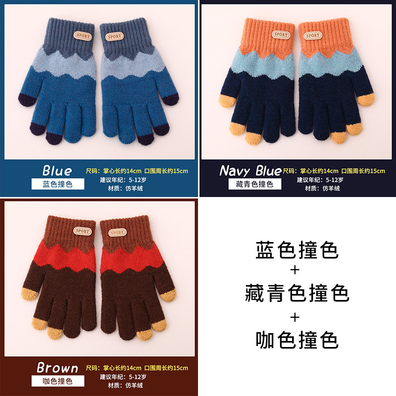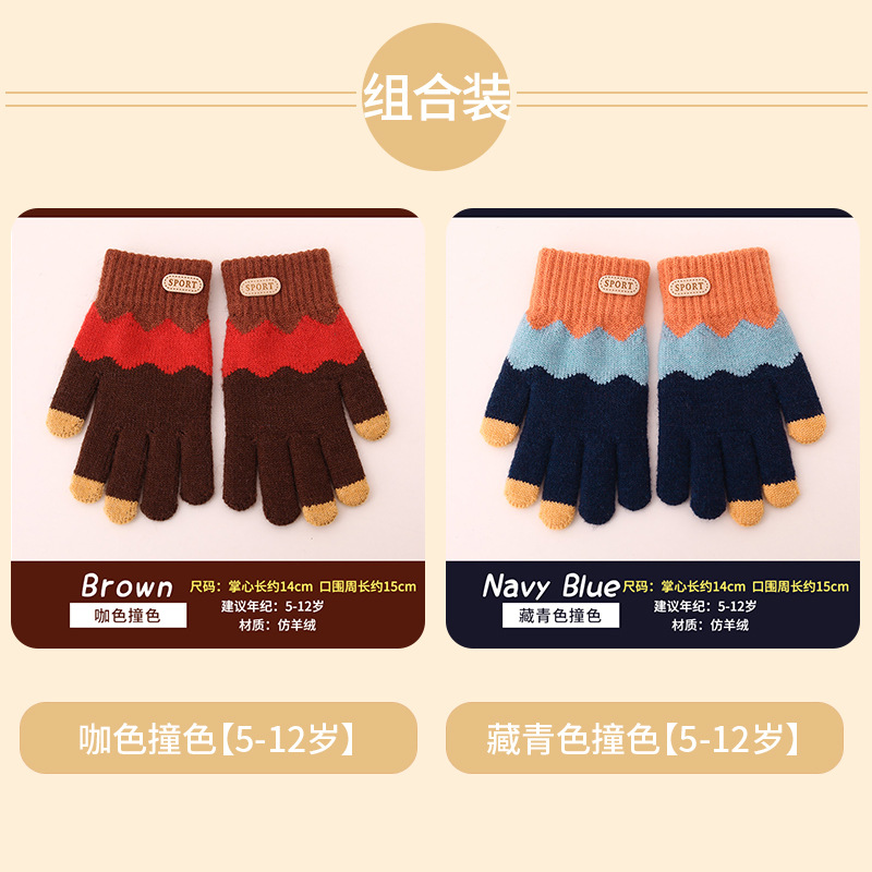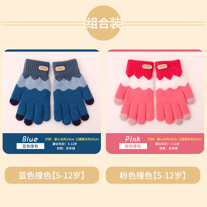 어린이 장갑 5 인조 겨울 따뜻한 양모 니트 중대형 어린이 소년 소녀 학생 겨울 손가락 얇은
